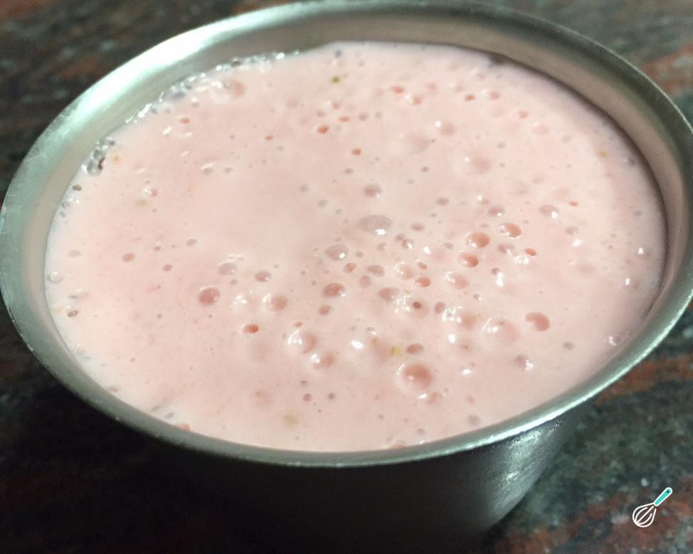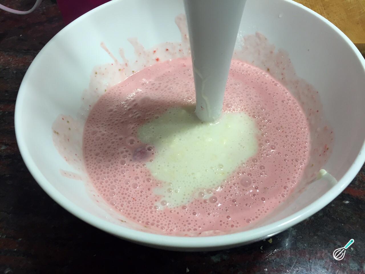 Bata tudo, com um mixer ou no liquidificador, até que já não restem pedaços. Adicione o leite previamente fervido com o coalho em pó, e volte a bater bem para que não fiquem grumos na mistura.