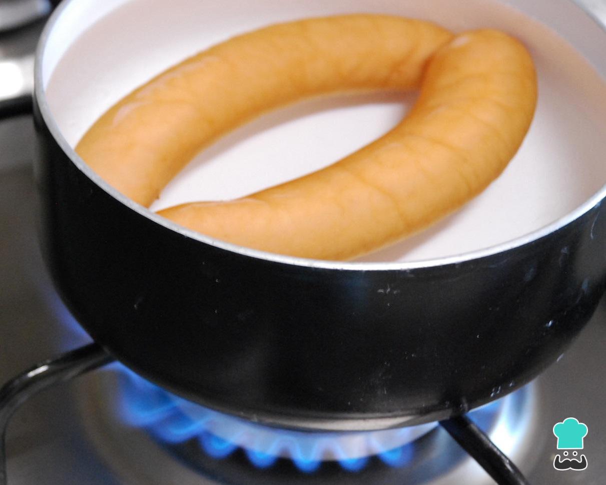Dica: Este é um passo opcional, você não precisa ferver as salsichas se elas já estiverem prontas a usar.