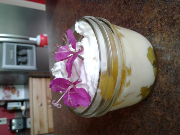 Monte a delícia de abacaxi da seguinte forma: no fundo de um refratário ou em copinhos individuais coloque o abacaxi e sua calda, cubra com o creme e finalize com o merengue preparado no passo anterior. Leve à geladeira de 1-2 horas e sirva gelado. Bom apetite!