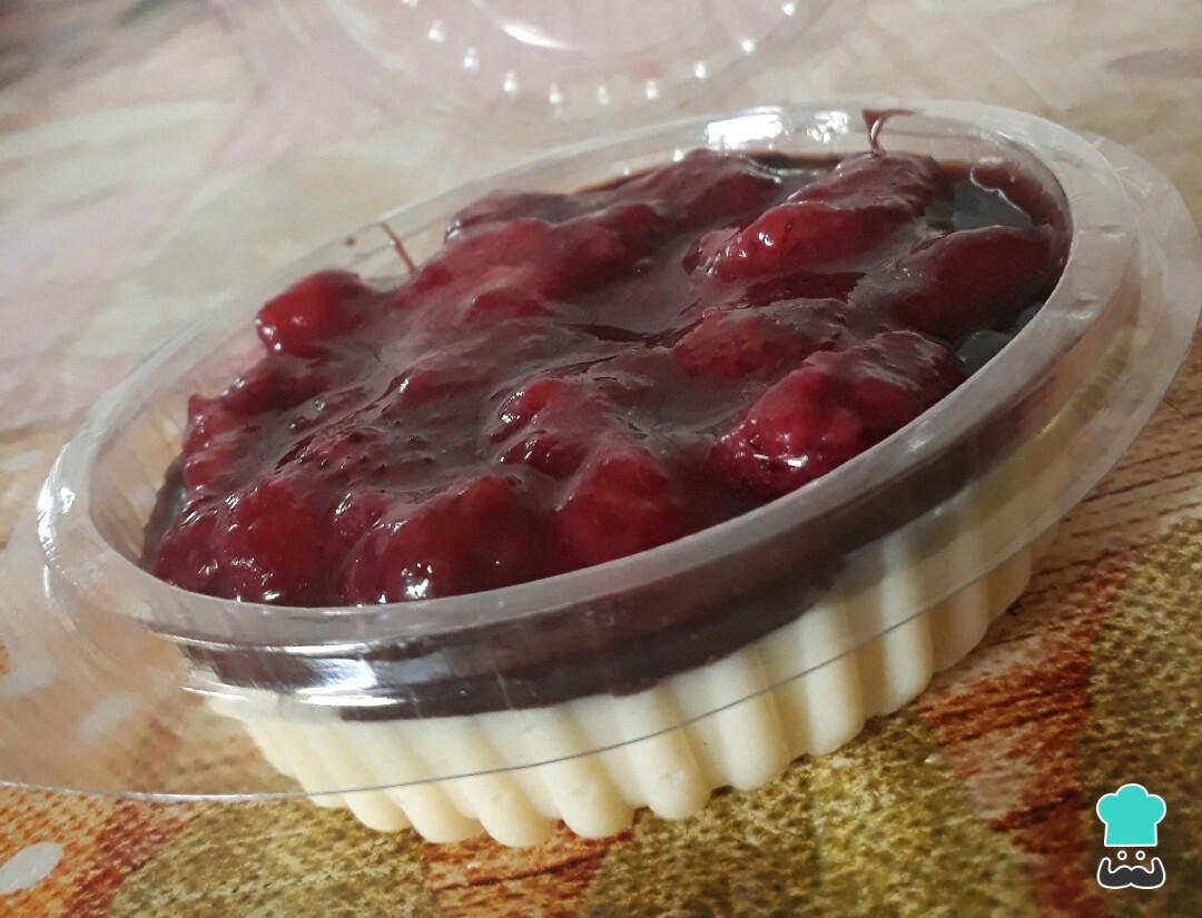 Para preparar esta receita de torta gelada comece por fazer uma geleia com os morangos. Para isso lave-os, corte em pedaços e cozinhe com açúcar a gosto até obter ponto de geleia.