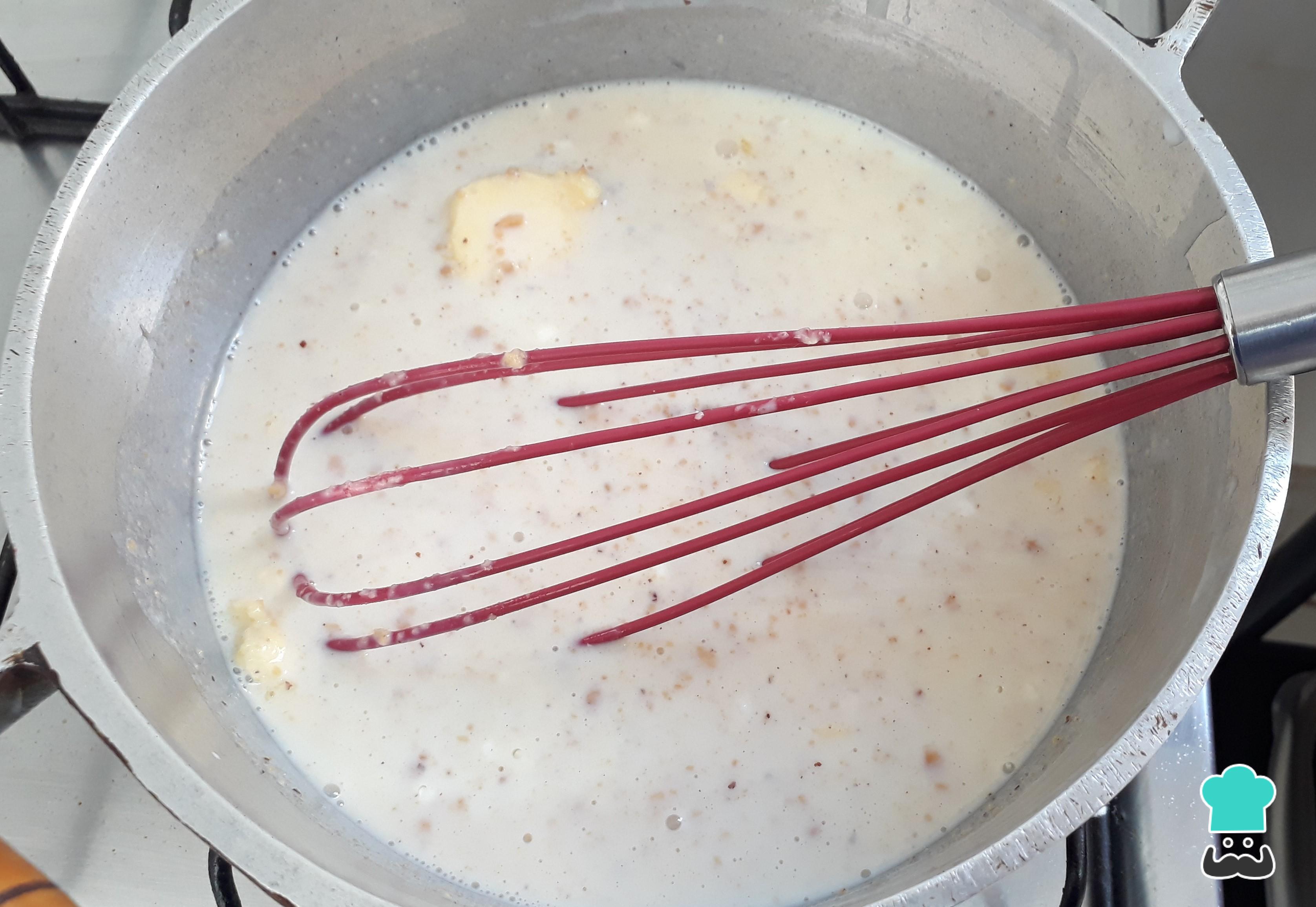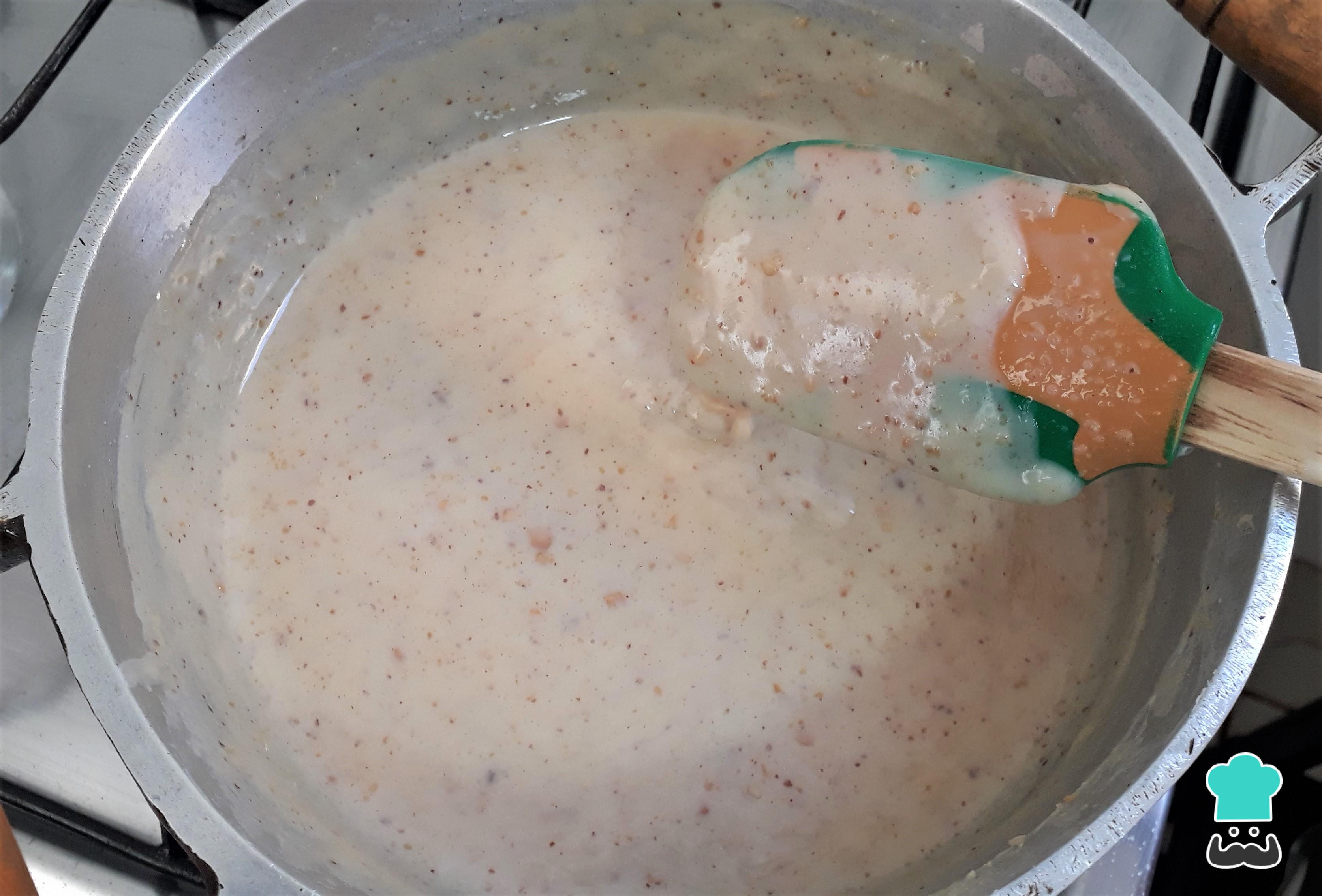 Leve a panela com os ingredientes todos dissolvidos para o fogo baixo e mexa sem parar até virar um creme.