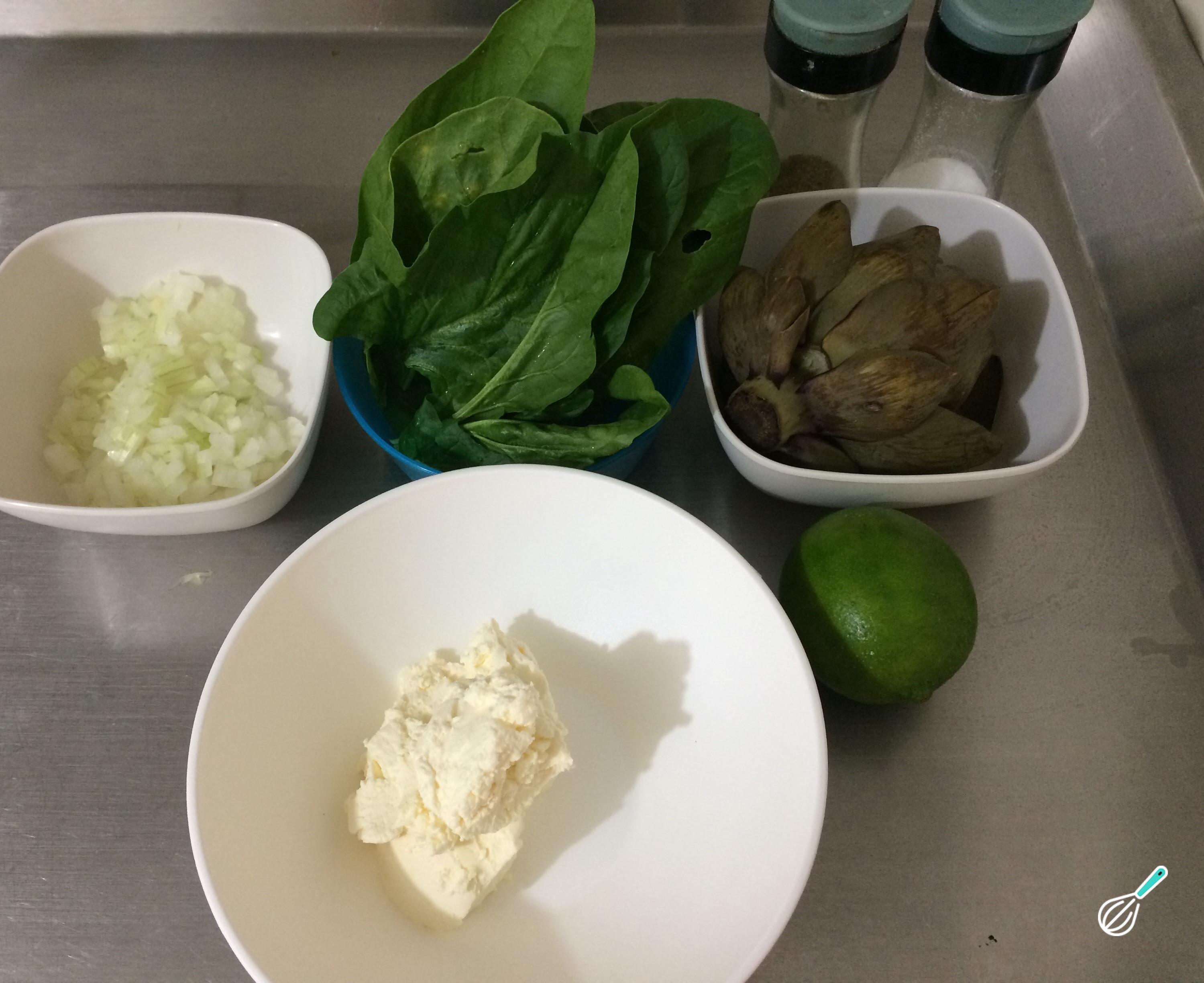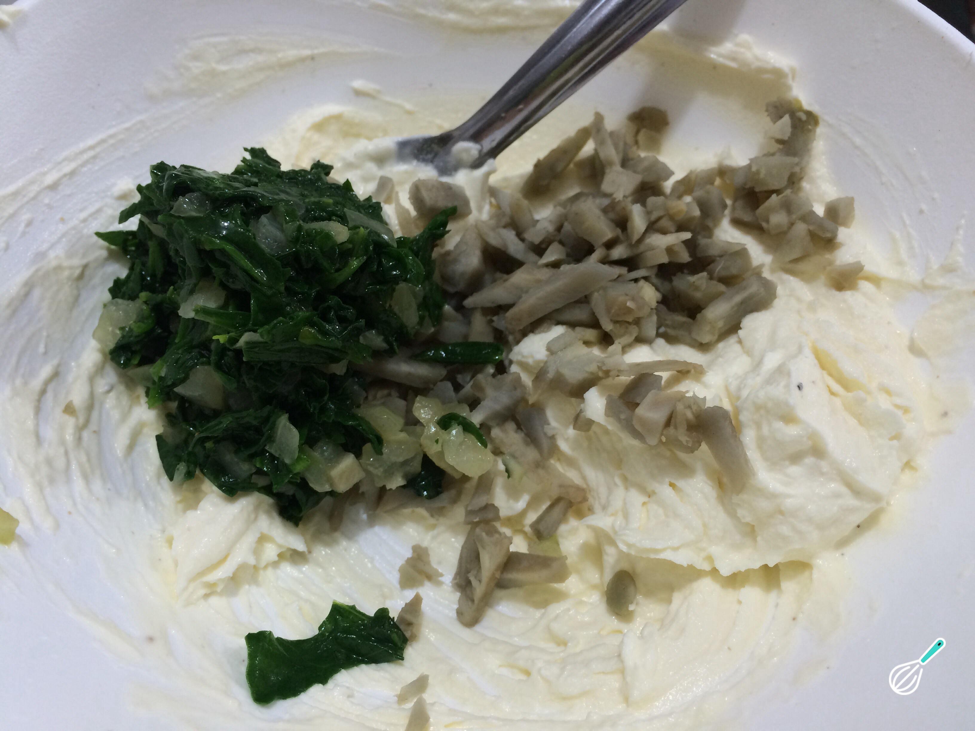 Acrescente os espinafres e a alcachofra quando estiverem frios, misture tudo e retifique o sabor com sal e pimenta.