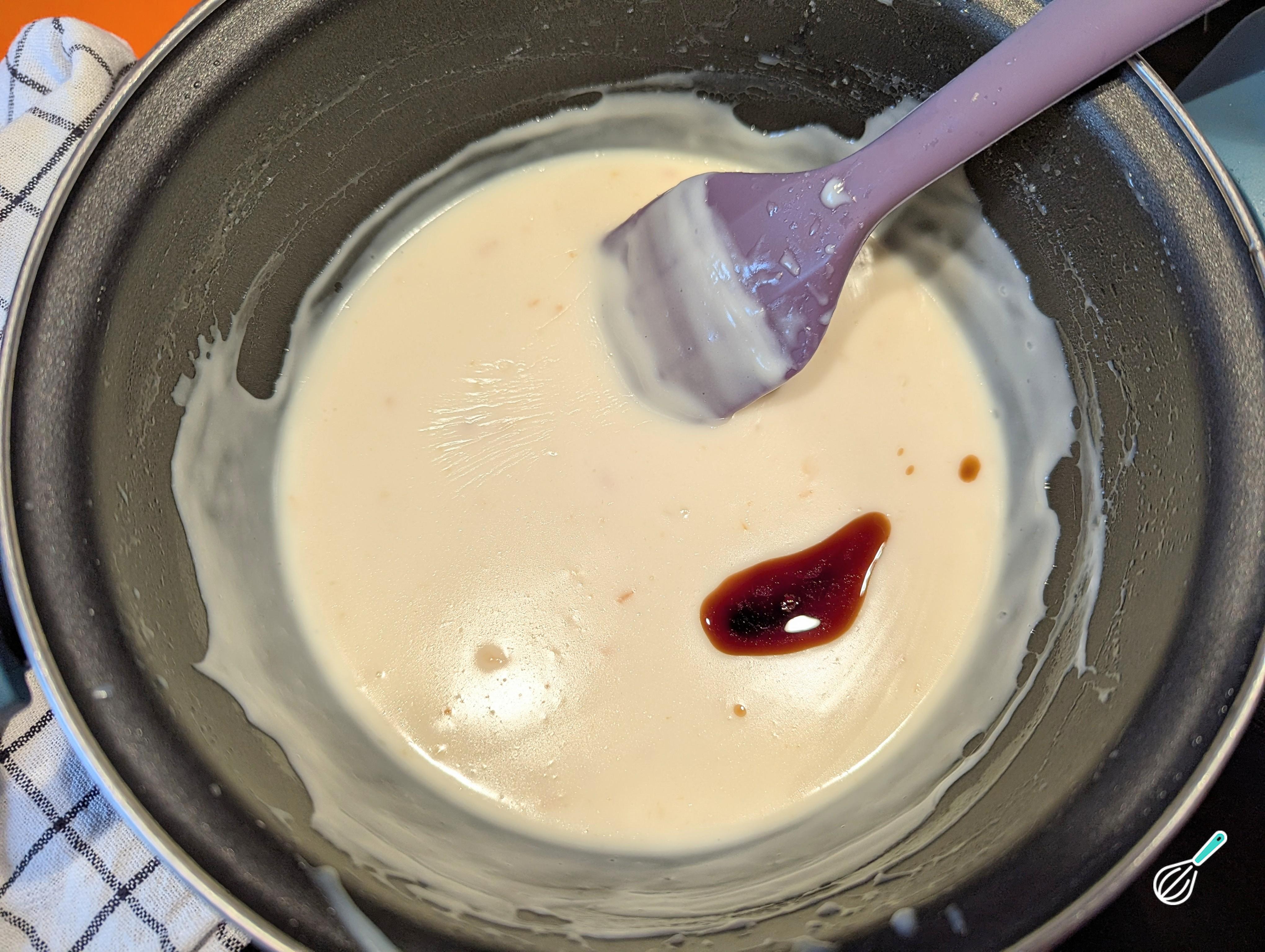 Por último, acrescente a essência de baunilha e mexa bem até incorporar. Reserve o creme e deixe esfriar.