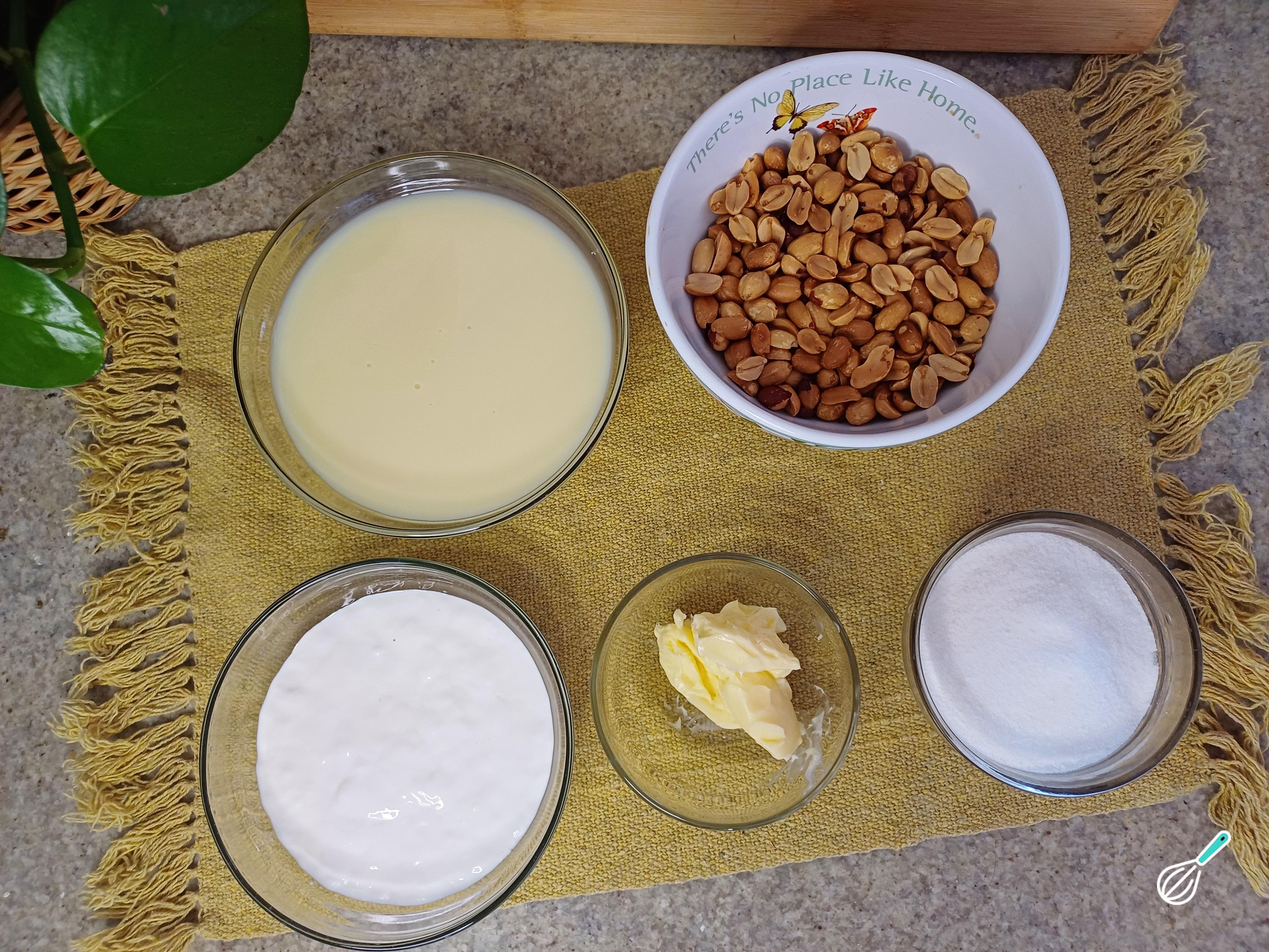 Comece separando os ingredientes para o preparo do doce de amendoim com leite condensado com creme de leite.