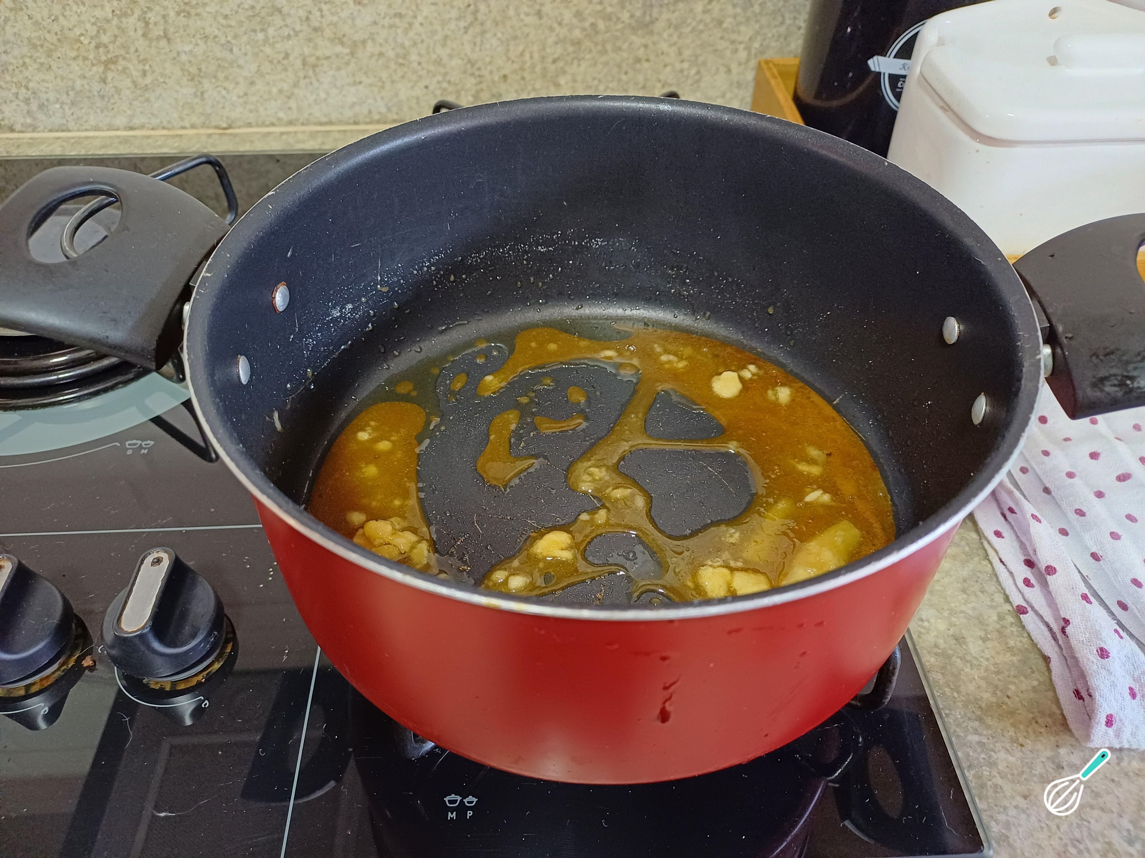 Em uma panela média, coloque o açúcar e deixe caramelizar em fogo baixo.