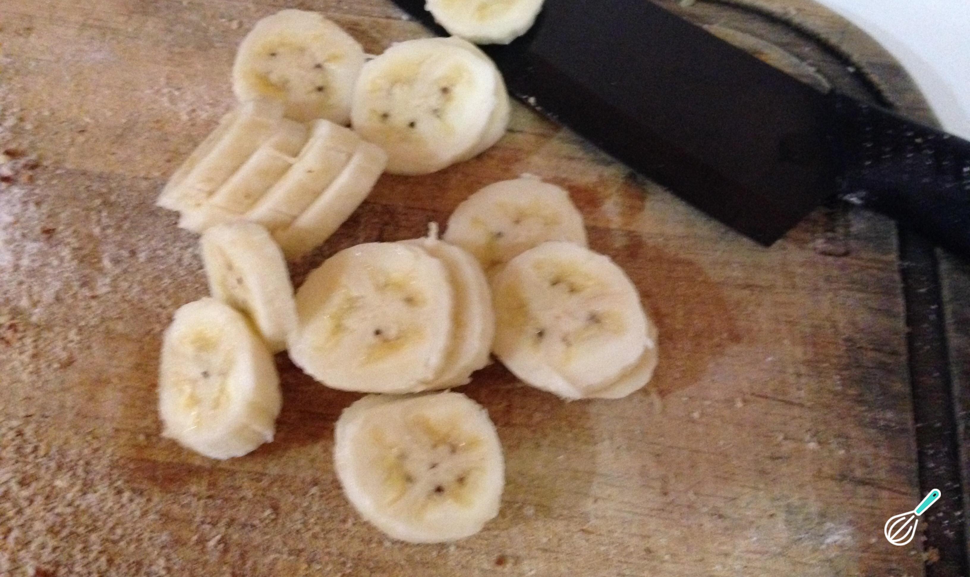 O primeiro passo desta receita de doce de banana é descascar as bananas e amassar ou cortar em rodelas.