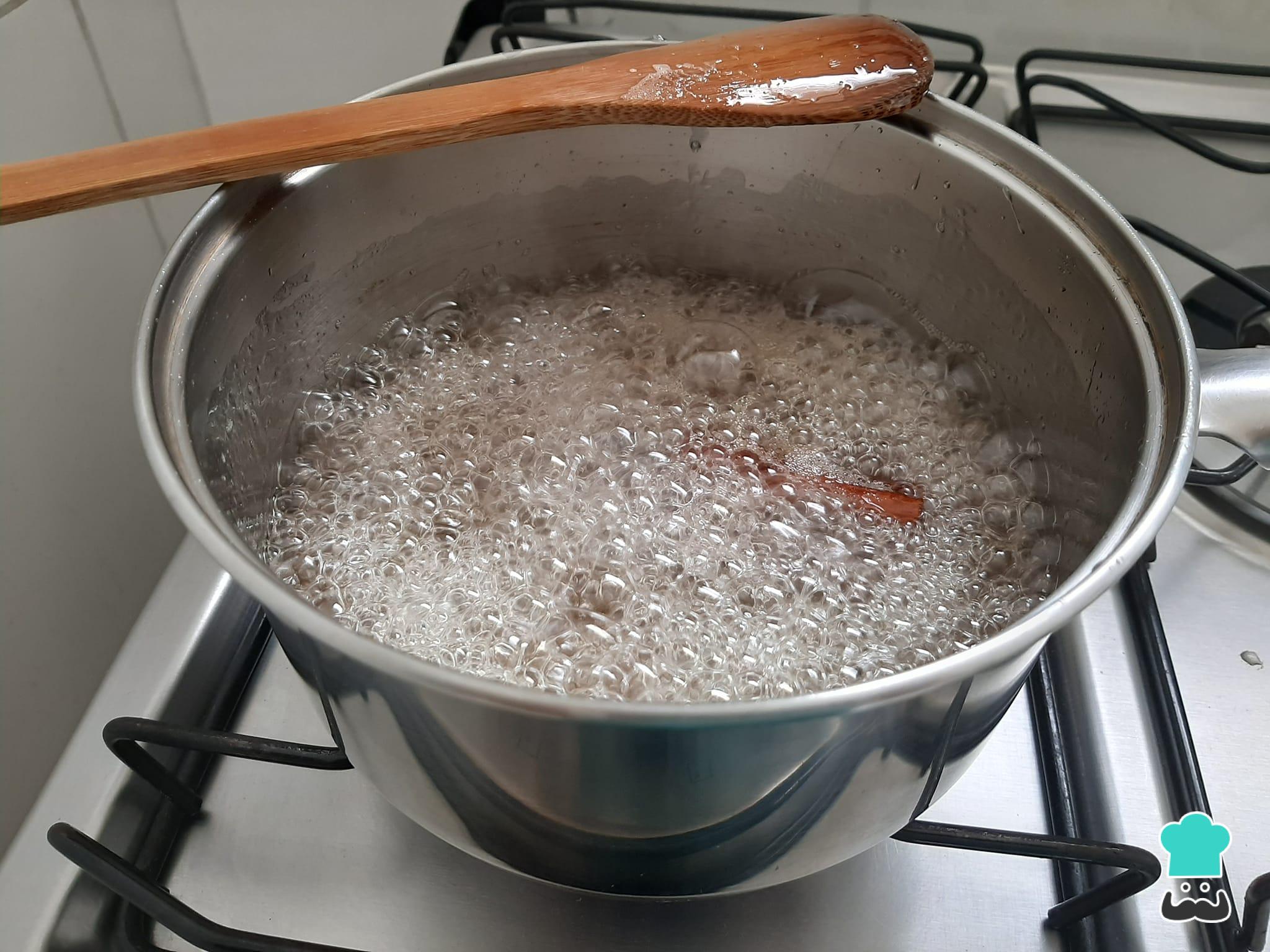 Leve ao fogo baixo e deixe cozinhar até o açúcar ficar bem diluído e começar a ferver.