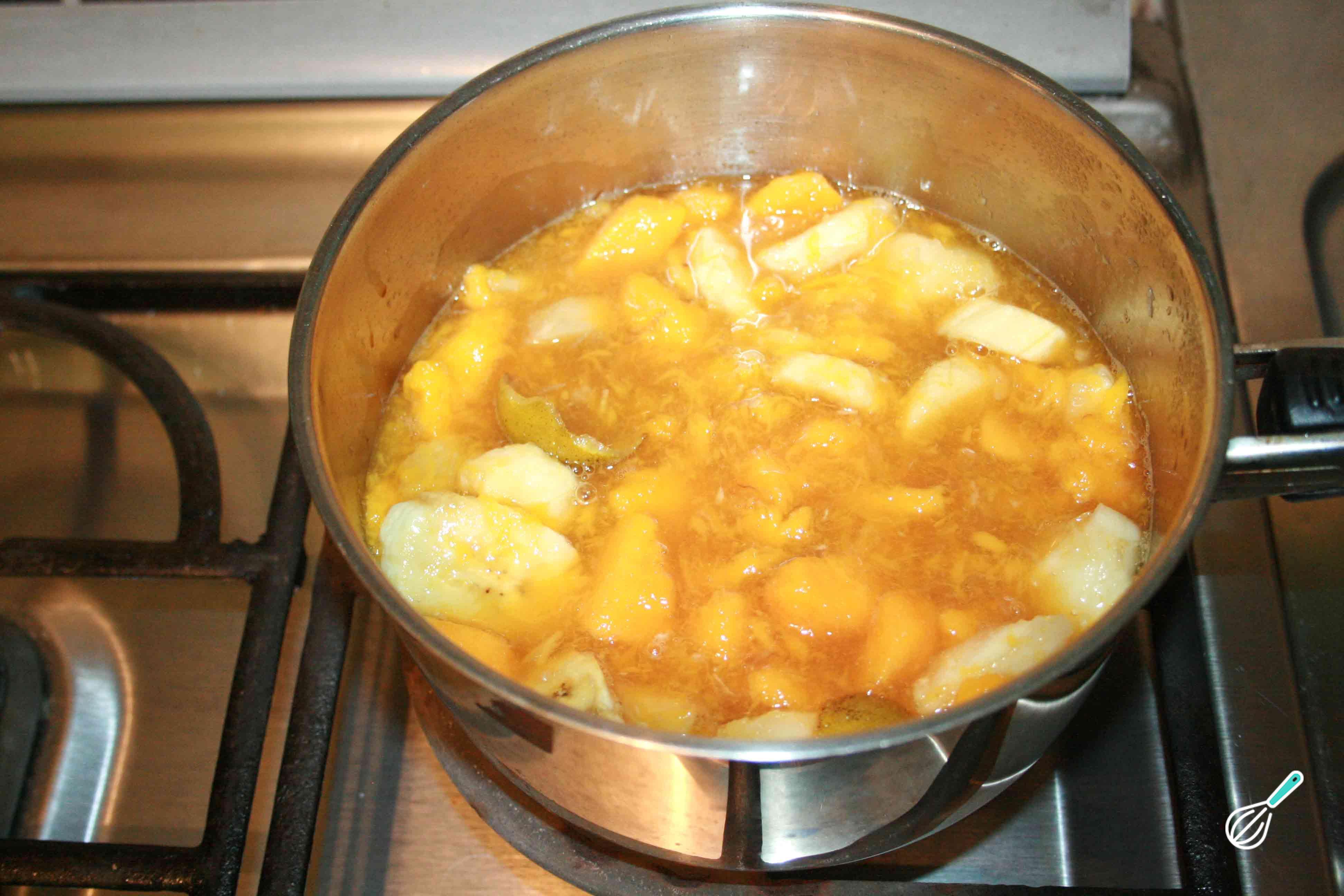 Quando ferver baixe o fogo e acrescente todas as frutas. Misture um pouco e deixe cozinhar por apenas 5 minutos, para que as frutas mantenham suas propriedades nutritivas.