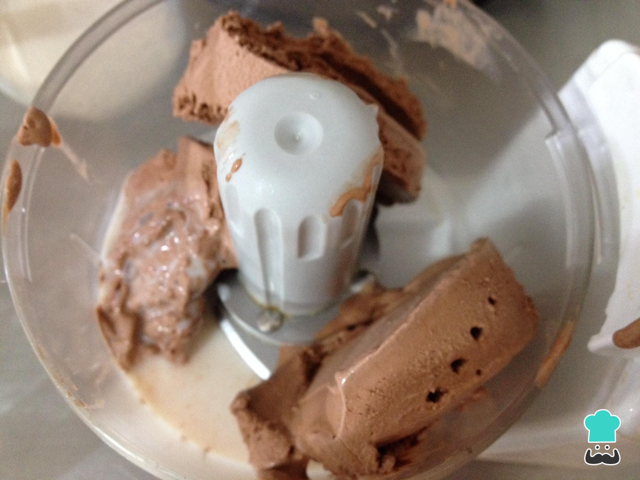 Coloque o sorvete e o leite no liquidificador ou processador de cozinha e bata até obter um creme.