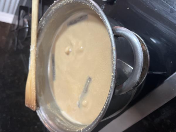 Dica: Se o caramelo estiver muito quente o leite irá respingar, por isso tome cuidado nesse passo.