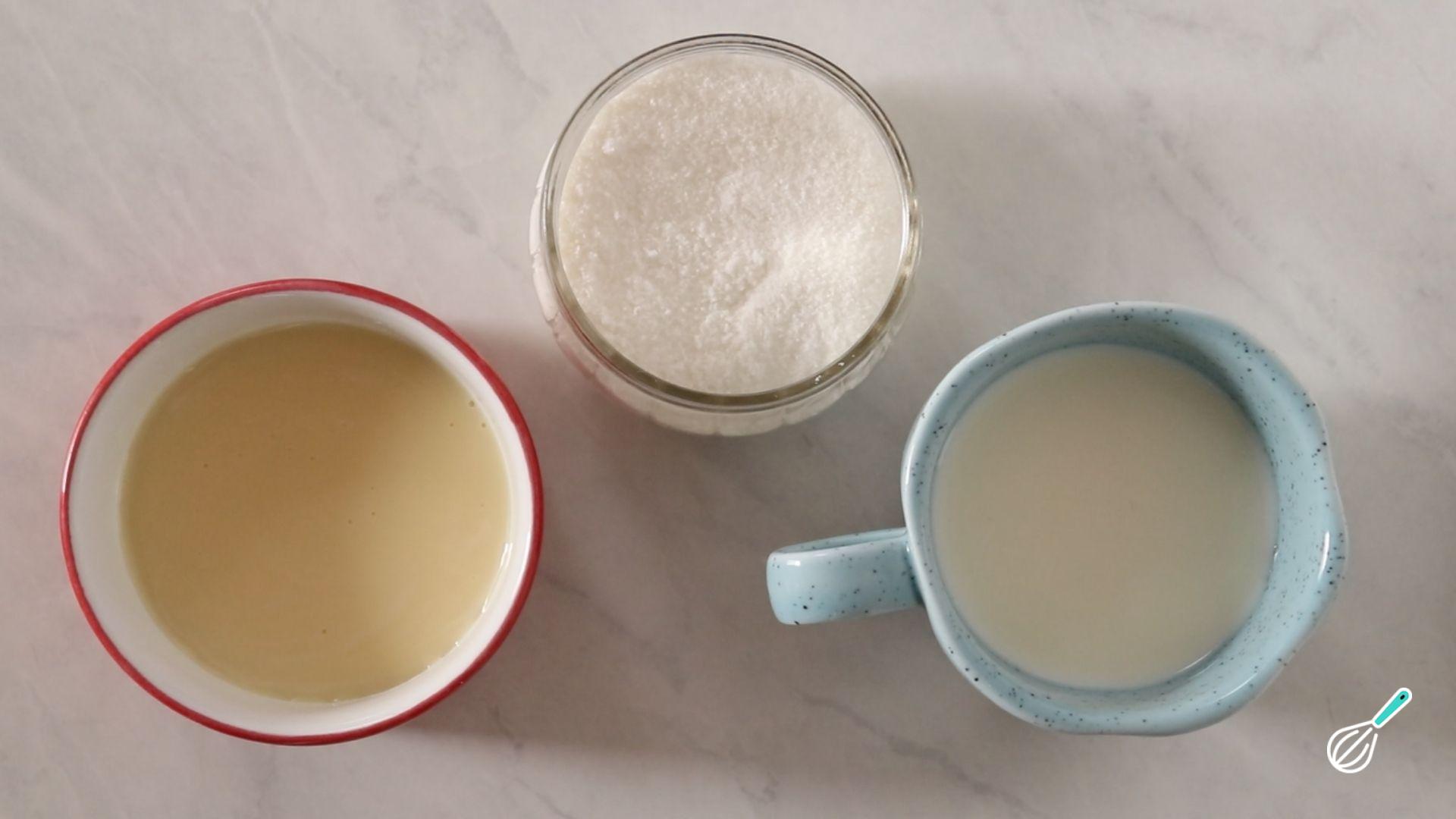 Separe os ingredientes do seu doce de leite de corte que, como referimos acima, são apenas 3: leite integral, leite condensado e açúcar.