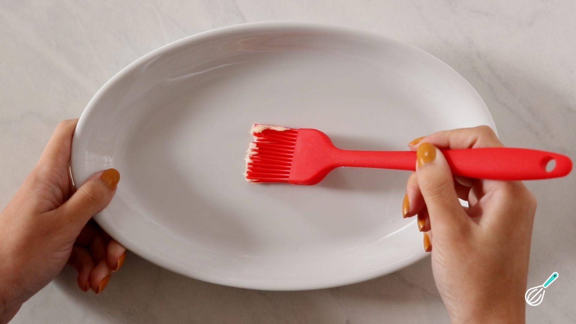 Prepare uma travessa untando o fundo com um pouco de manteiga.