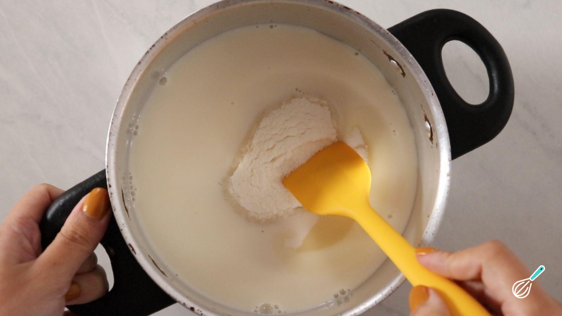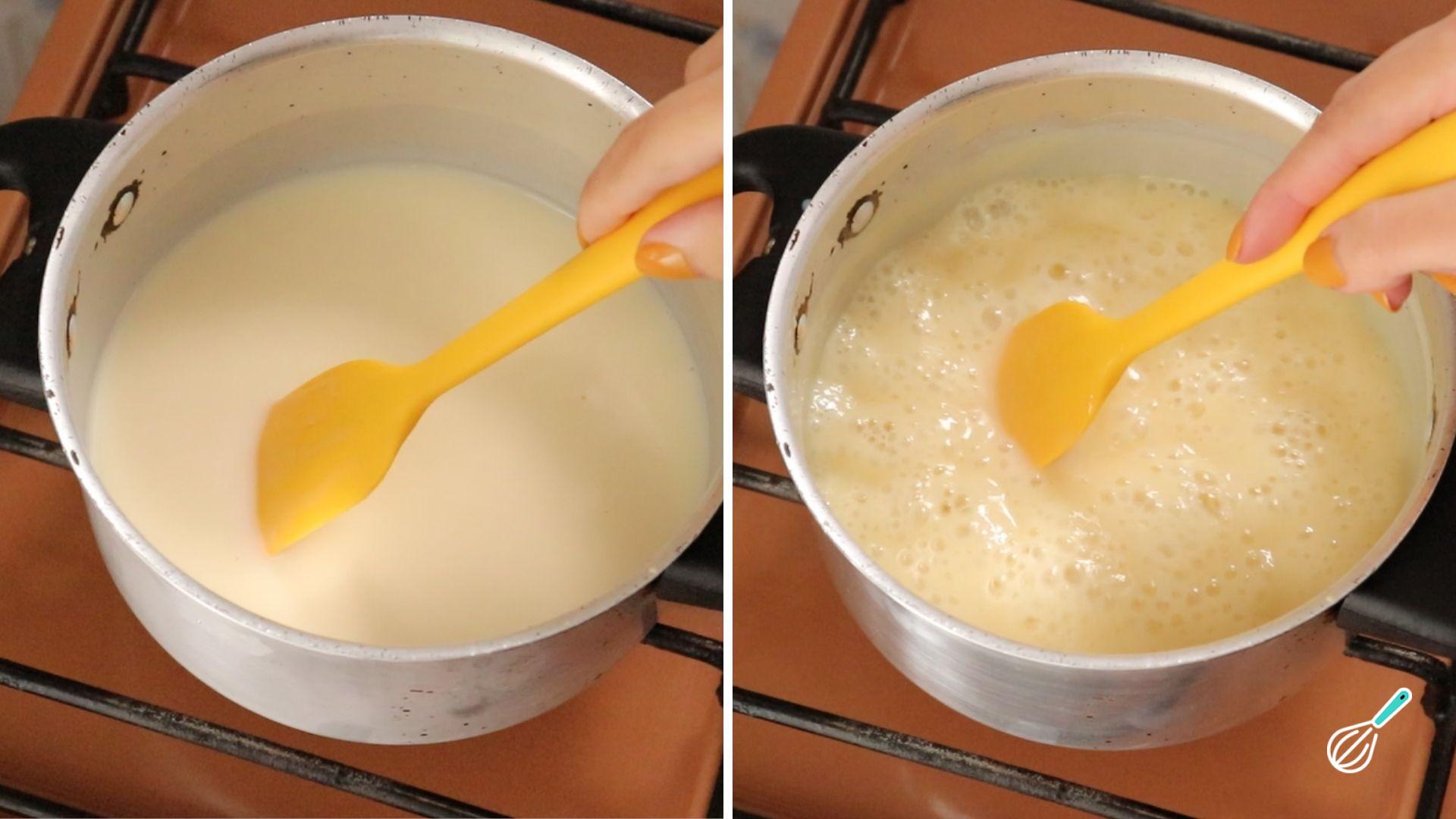 Coloque todos os ingredientes do doce de leite em uma panela e misture bem.