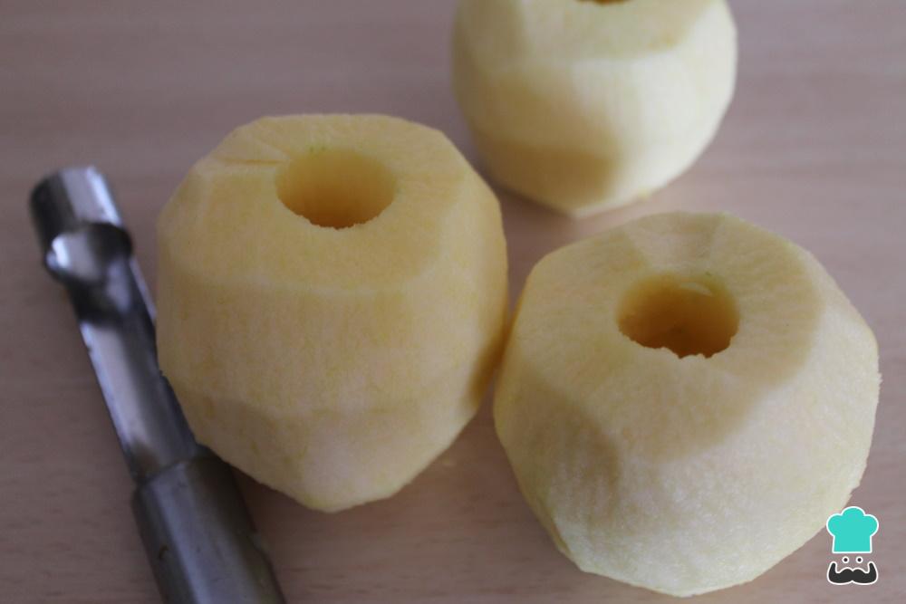 Descasque as maçãs e retire o centro delas. Para garantir um doce de maçã muito gostoso prefira usar uma variedade de maçãs docinha, como a Fuji ou Gala.