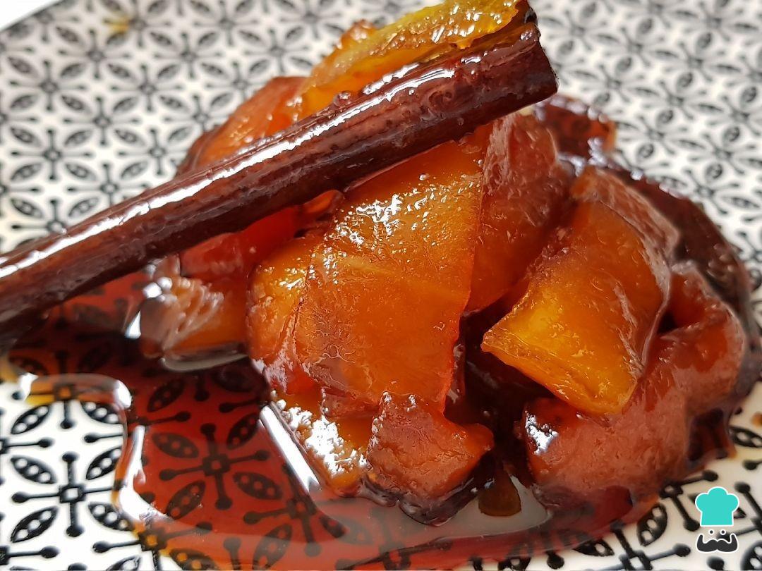 Este doce de mamão em pedaços é uma receita deliciosa, com cara de gourmet, capaz de surpreender qualquer um! Consiste em cozinhar o mamão numa calda aromatizada com canela e casca de limão, até o mamão ficar macio e a calda reduzir, e pode ser servido simples assim ou com cubos de queijo, para criar um contraste de sabores doces e salgados.