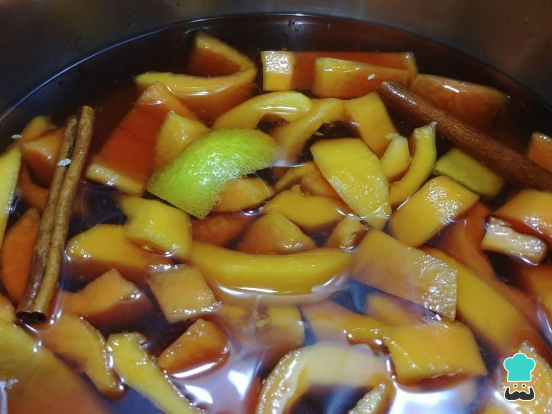Dica: O tempo que o mamão leva para ferver depende da quantidade de água na panela. Por isso deixe ferver por 1 hora e, se ainda restar muito líquido ao fim desse tempo, destampe e deixe ferver até a calda reduzir.