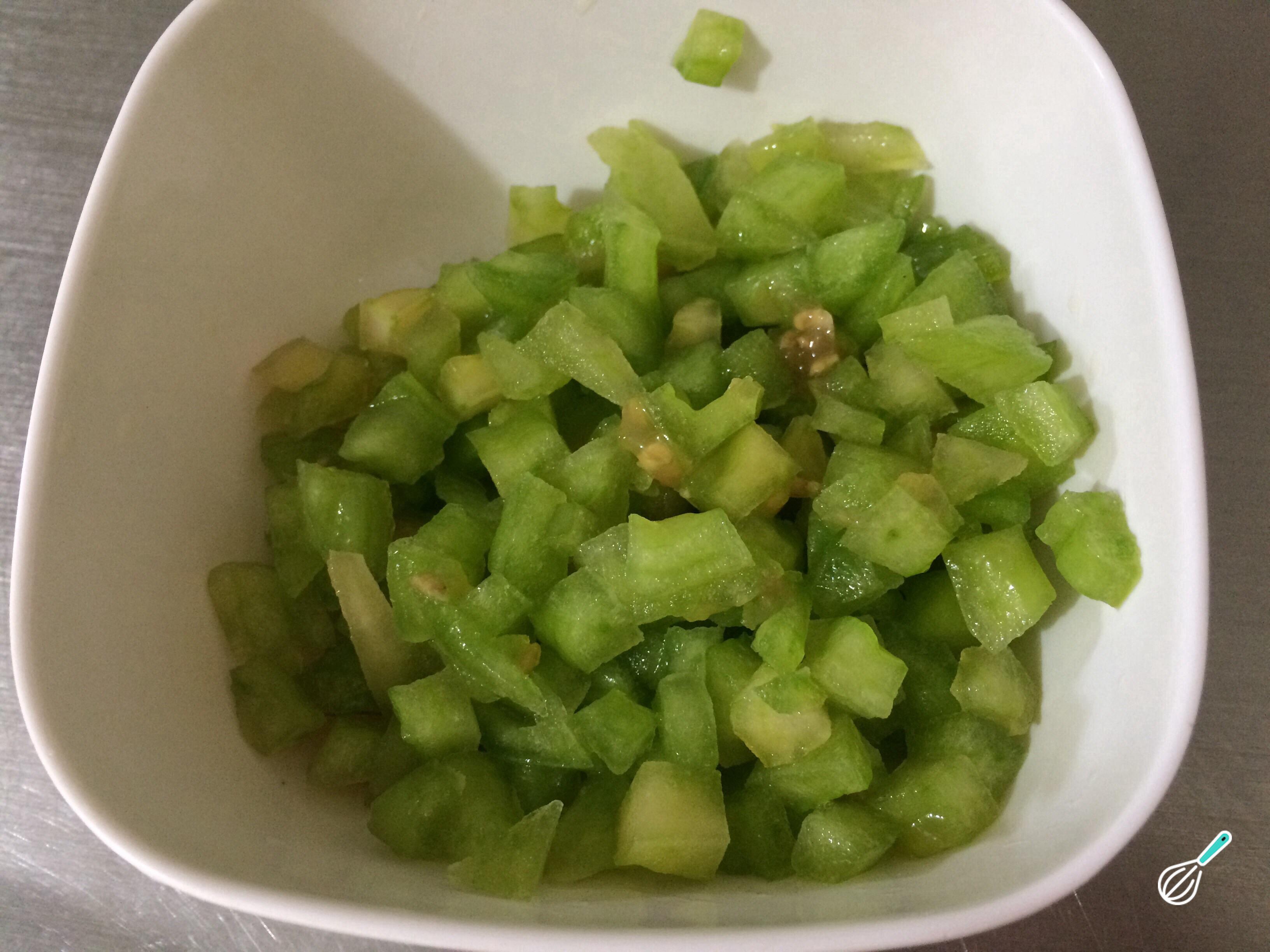 Descasque e corte o tomate em cubos pequenos (sem sementes).