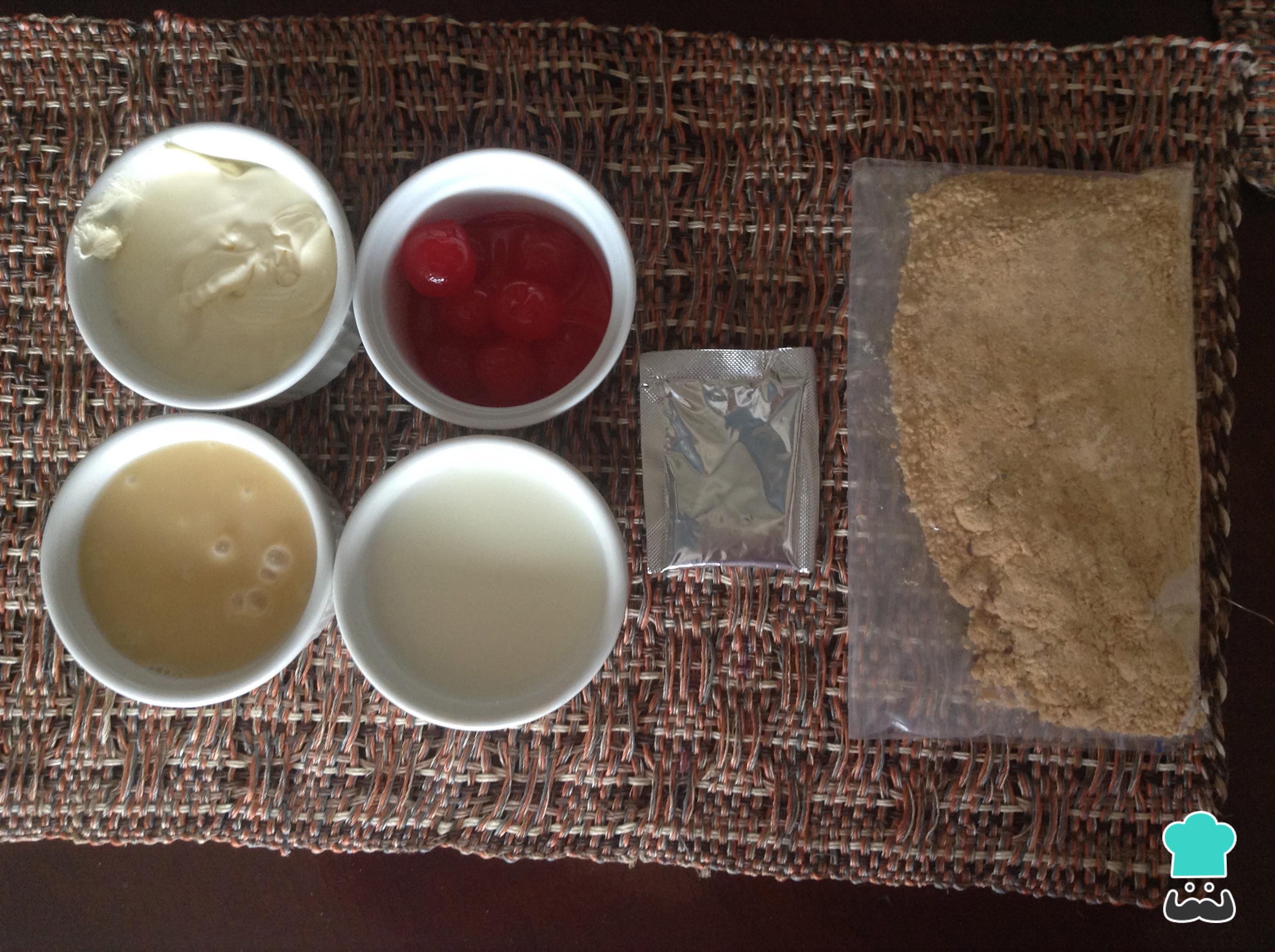 Para fazer este doce de três leites comece por reunir os ingredientes.