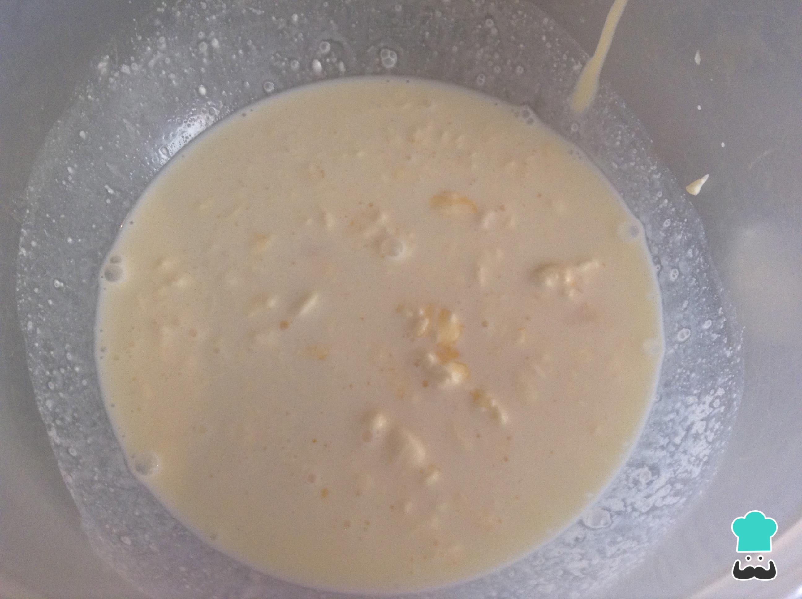 Bata muito bem os três leites (leite, creme de leite e leite condensado) no liquidificador.