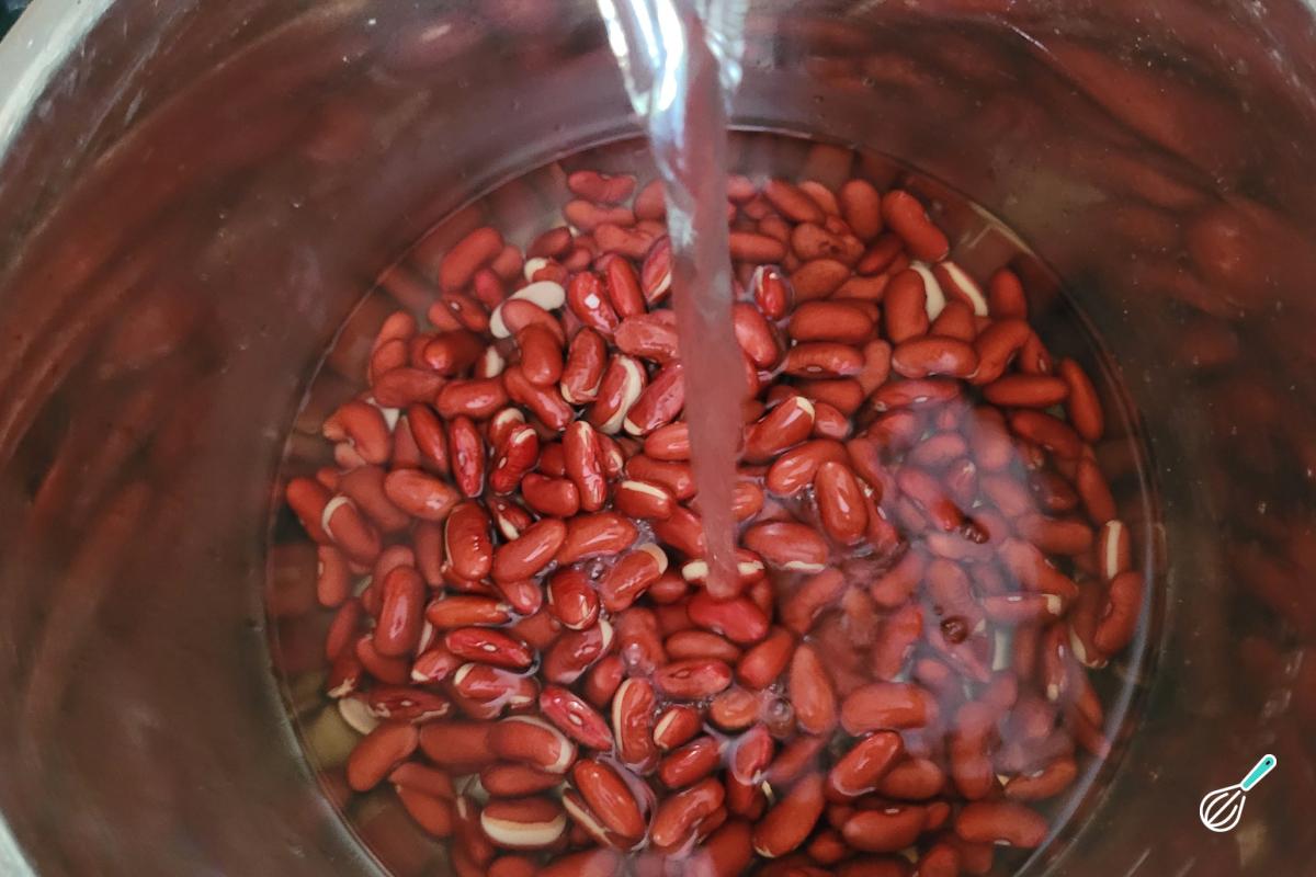 Escorra o feijão e leve para cozinhar com uma água nova por 15 minutos na pressão, até que o feijão fique bem macio. Se não tiver deixado o feijão de molho, cozinhe por mais tempo (uns 25-30 minutos).