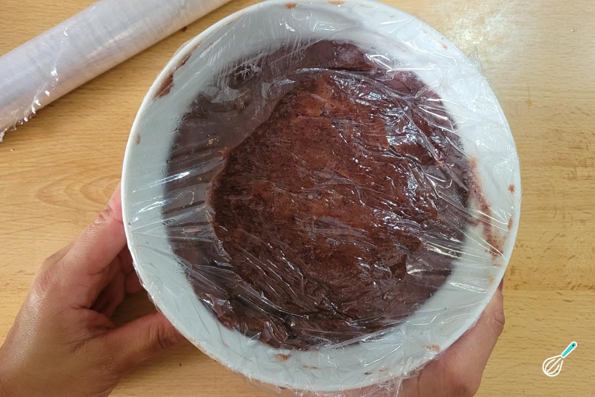 Transfira para uma tigela, cubra com plástico filme em contato com a pasta e leve para a geladeira por pelo menos 30 minutos, até esfriar totalmente e firmar. Assim vai ficar mais fácil modelar o recheio.