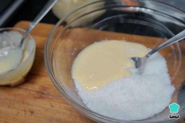Dica: a consistência da massa vai depender do tipo de coco ralado usado, pois alguns tipos de coco ralado absorvem mais rapidamente o leite condensado que outros.