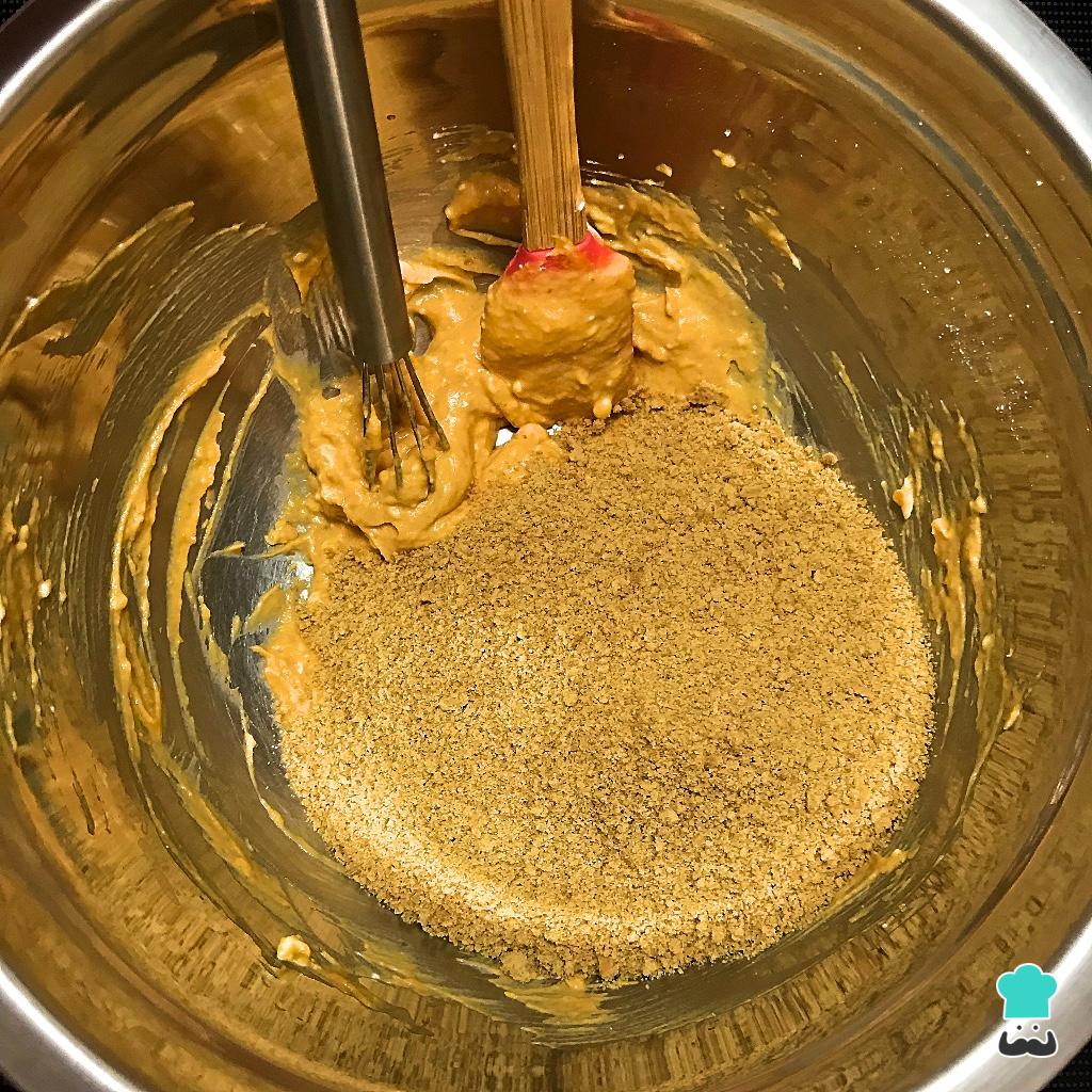 Adicione o biscoito triturado e mexa bem, até ficar uniforme.