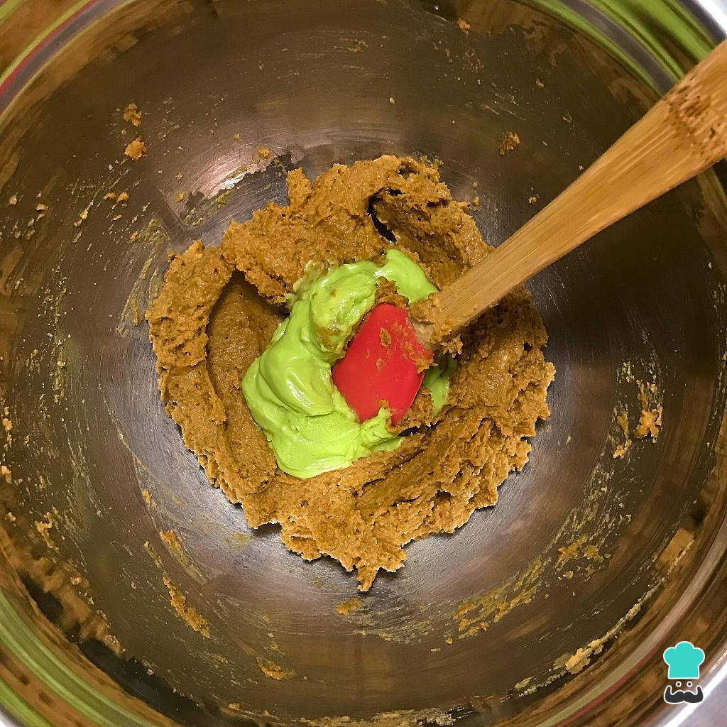 Por último derreta 2 colheres de sopa do chocolate verde e misture na massa de abóbora. Leve para o freezer por 30 minutos.