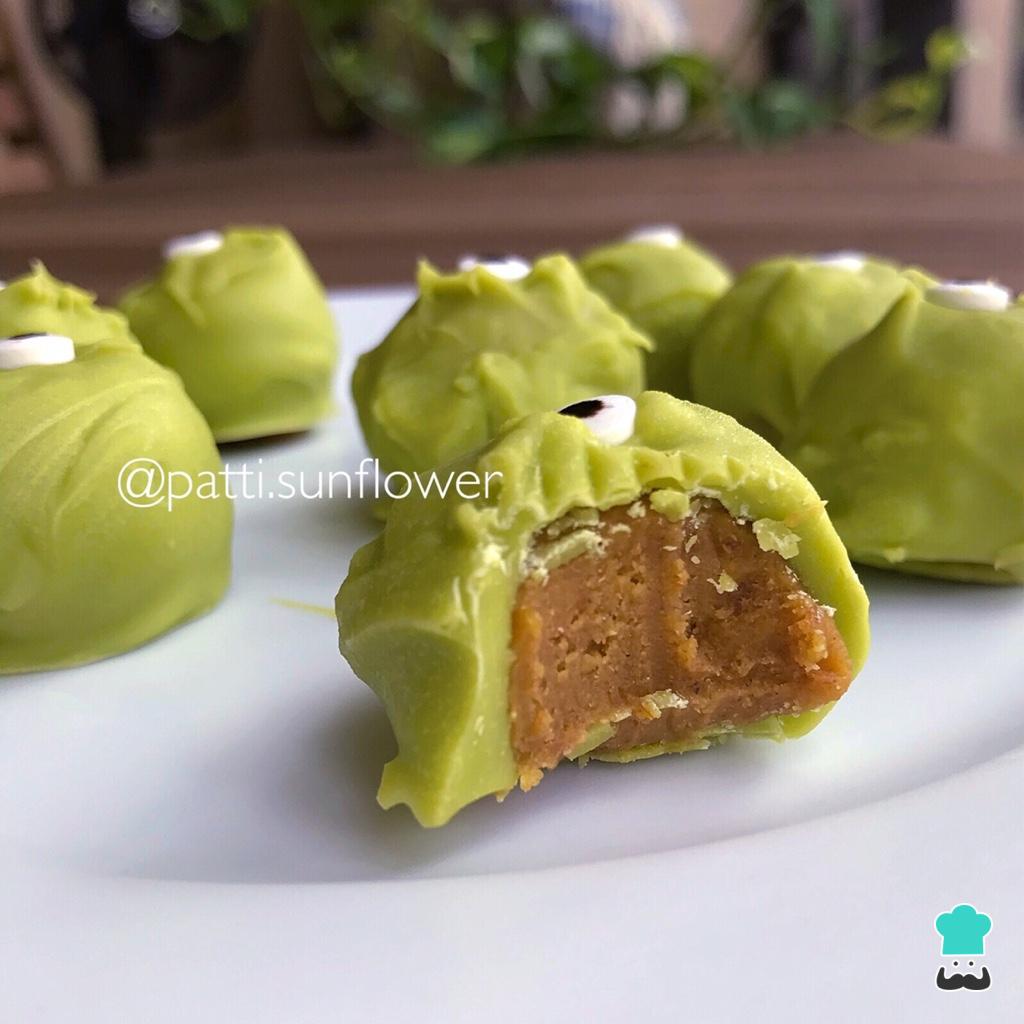 Halloween é sempre uma boa época para brincar na cozinha: você pode deixar a imaginação correr solta e reinventar receitas de uma maneira mais assustadora. Esse bombom de abóbora e cheesecake costumo fazer com cobertura de chocolate branco e mais um pouco de biscoito triturado, mas para o Halloween ele ganhou uma roupinha de chocolate verde e um olhinho assustadoramente fofo! Quanto ao sabor, para quem ama doce de abóbora, como eu, vai ser um dos melhores doces do mundo! Vem aqui comigo no TudoReceitas aprender a fazer esse docinho de Halloween!
