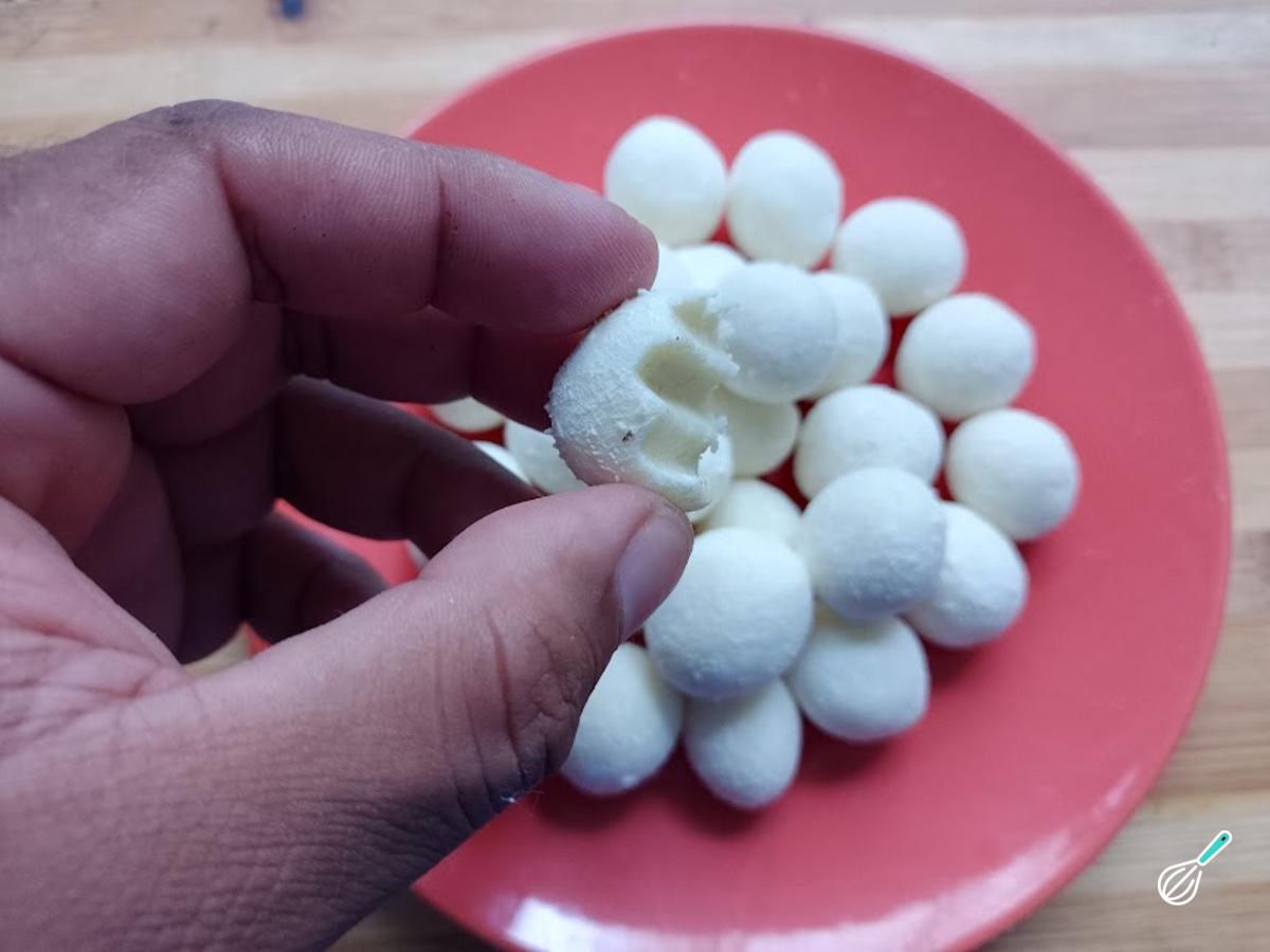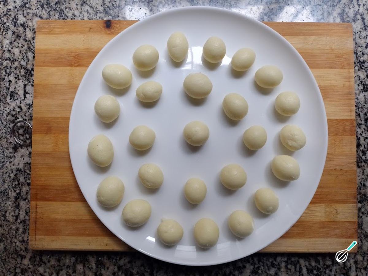 7. Faça bolinhas ou o formato que preferir; você também pode escolher qual tamanho deseja para o seu docinho de leite em pó com leite condensado.