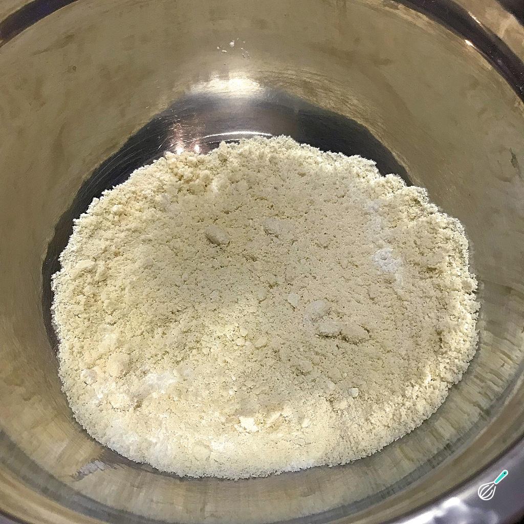 Num bowl misture os ingredientes secos: a farinha de amêndoas, a farinha de tapioca, o sal e o fermento. Essa é a base do nosso donuts sem glúten delicioso!