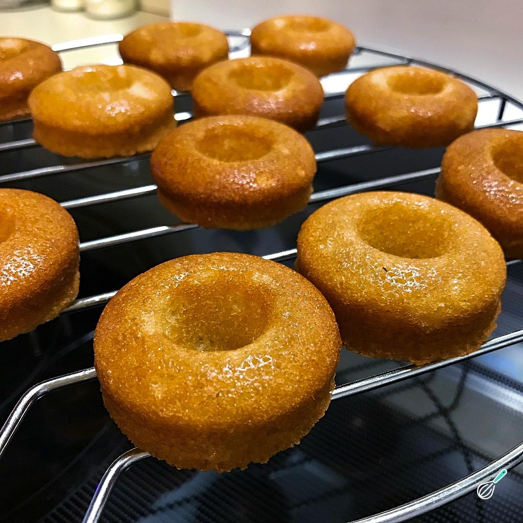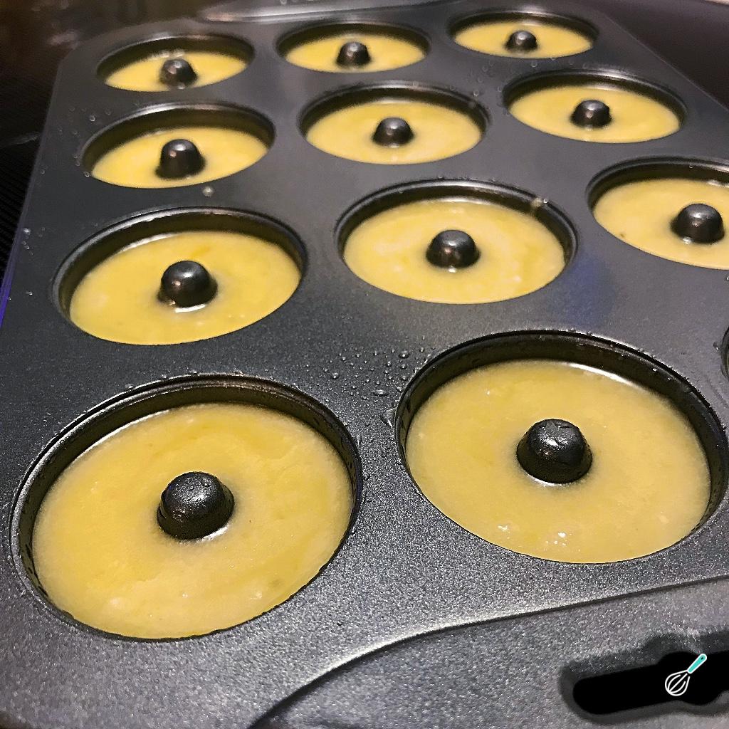 Com a ajuda de um saco de confeitar preencha uma forma de mini donuts (untada com óleo de coco) com a massa. Leve para assar em forno pré aquecido a 190°C por 12 minutos
