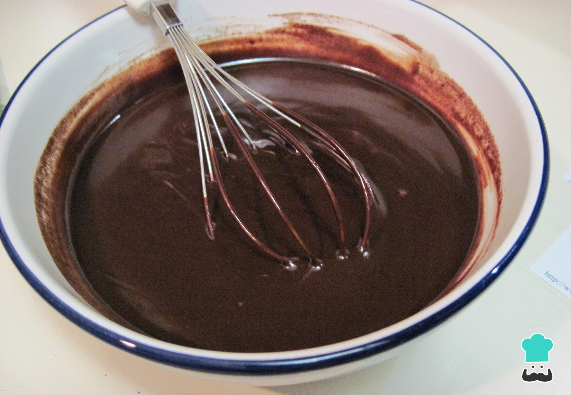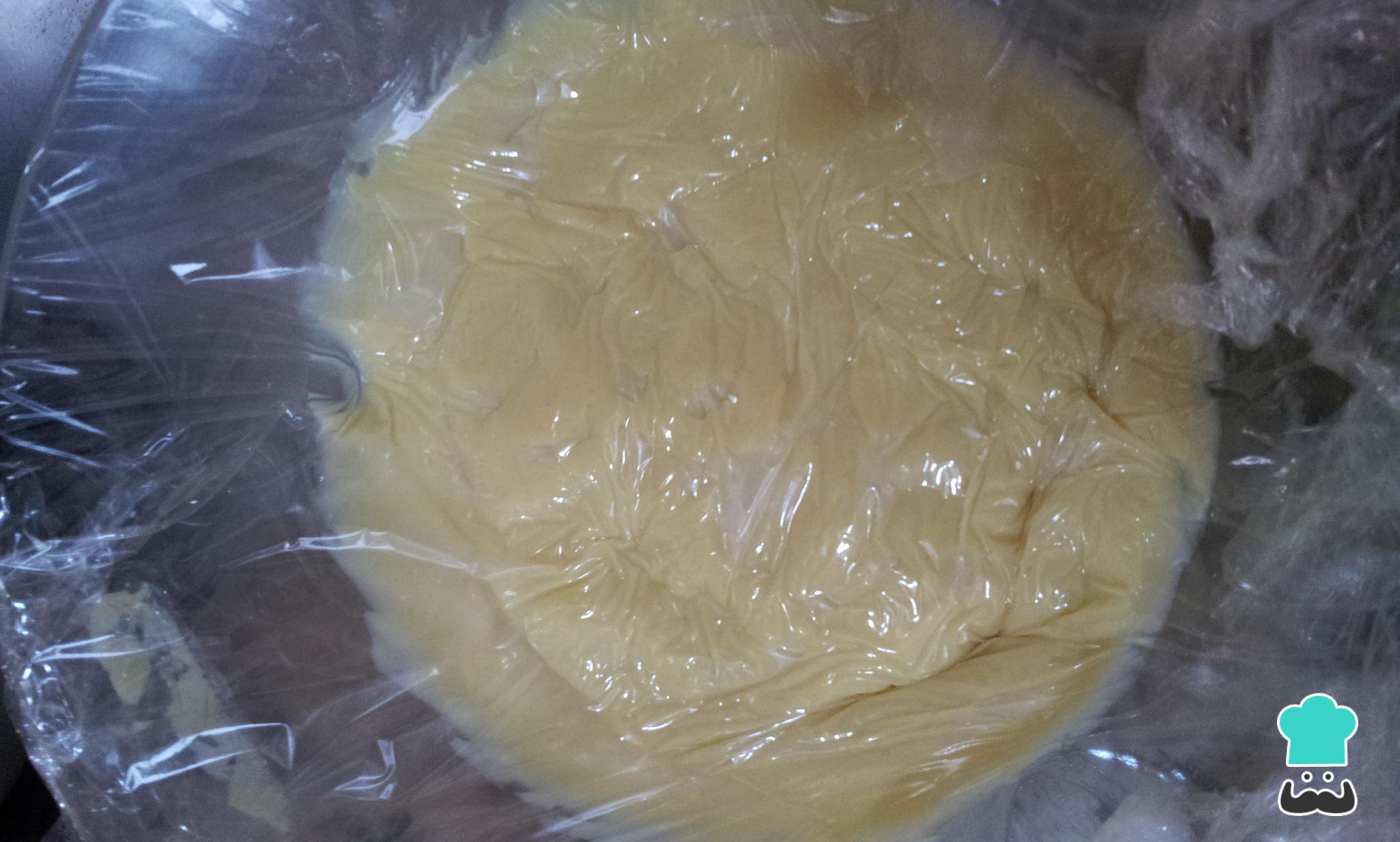 Após o passo anterior, o recheio das bombas de chocolate está pronto, reserve na geladeira coberto com filme plástico, para esfriar um pouco.