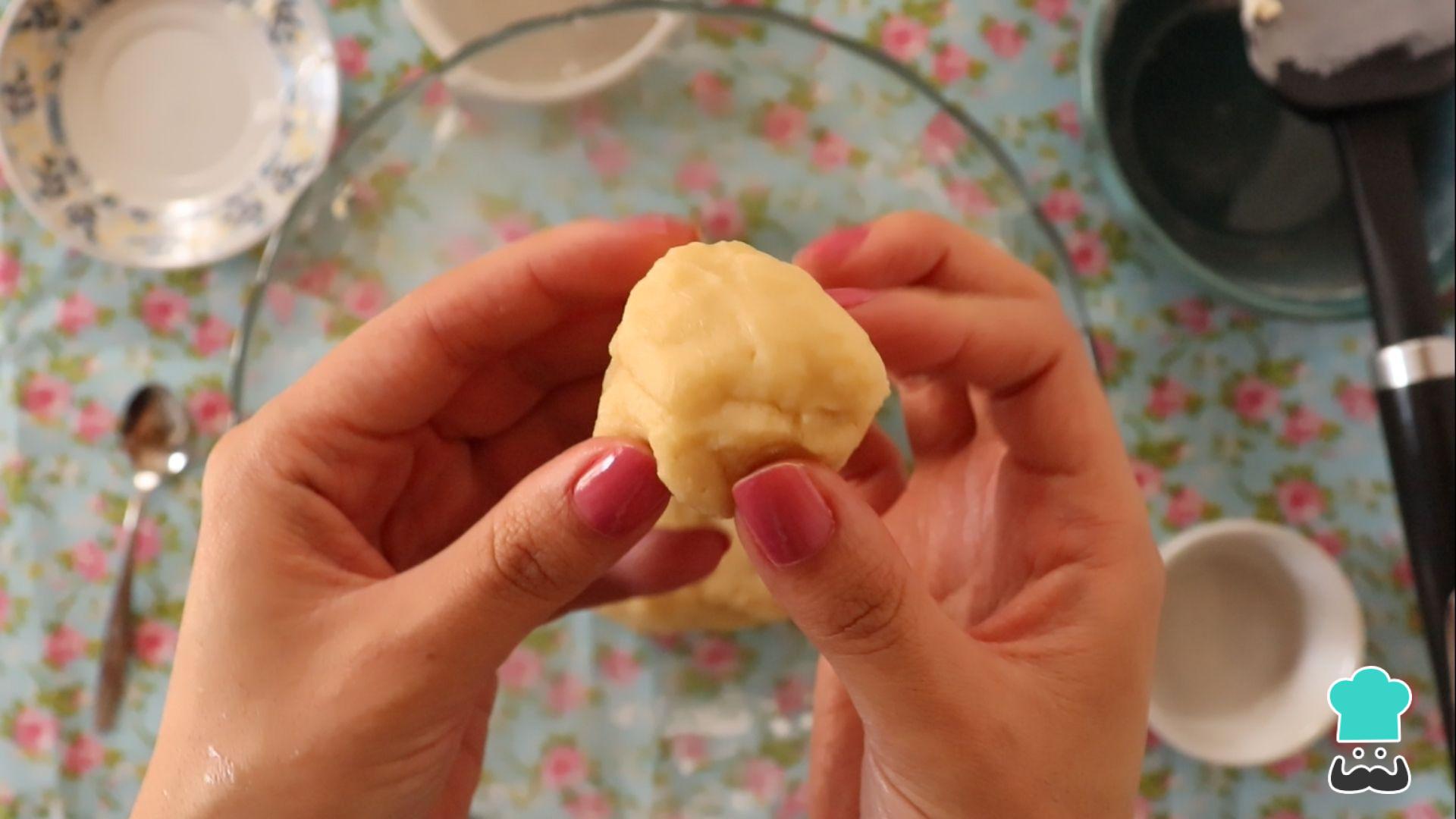 Trabalhe a massa até ela chegar nesse ponto da foto, bem lisa e sem grudar nas mãos (é bem rápido viu, gente? Em 5 minutos essa massa está pronta!).