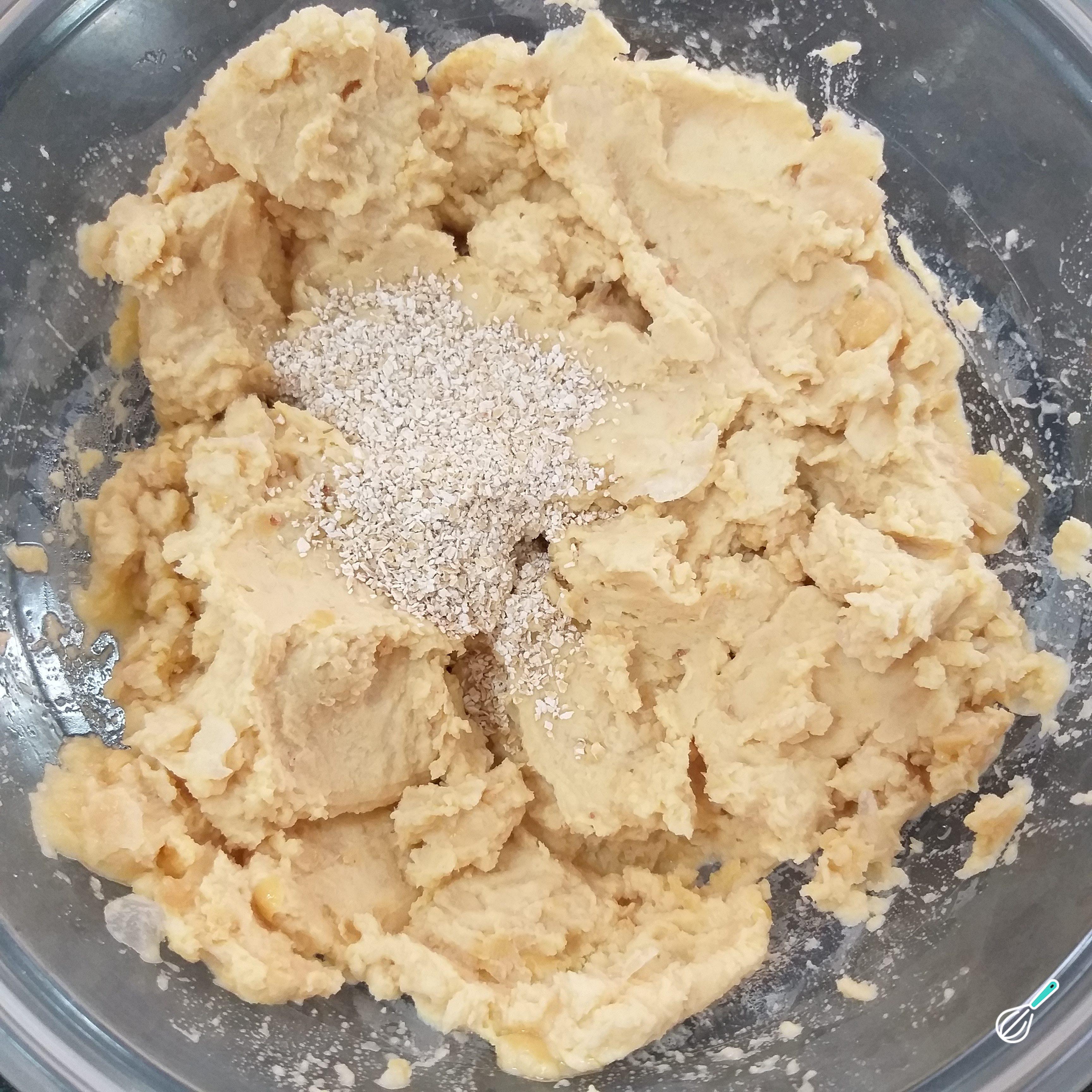 Bata os grãos juntamente com azeite e sal com o auxílio de um mixer.