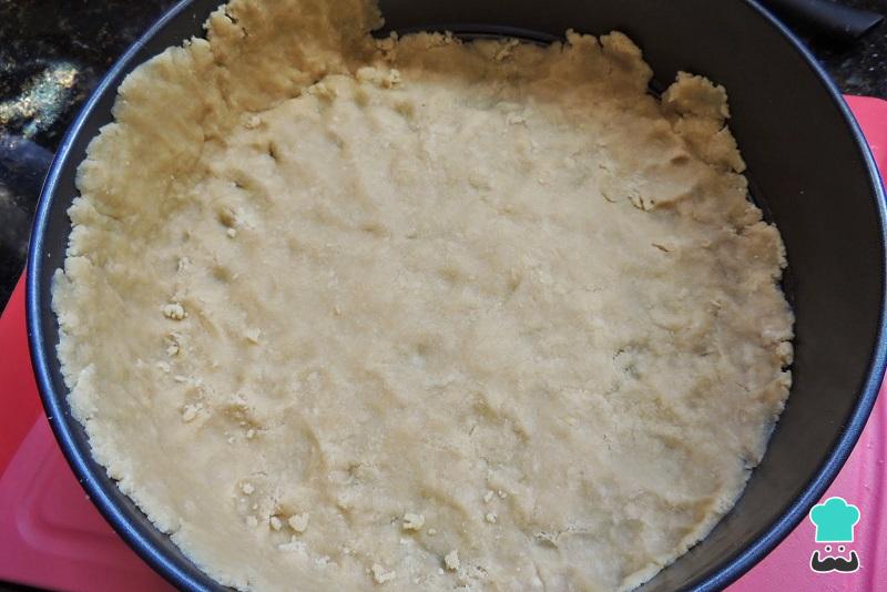 Passado esse tempo retire a massa do frio e reserve uma parte para cobrir o empadão. Abra o restante com o rolo e forre o fundo e os lados de uma assadeira de fundo falso devidamente untada com manteiga ou óleo. Reserve.