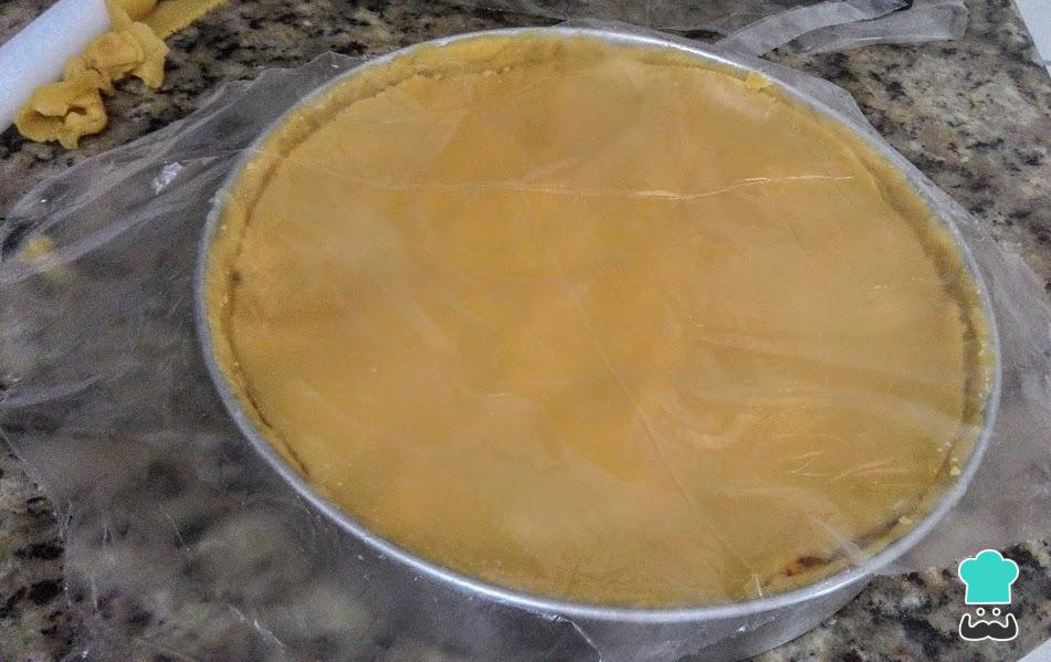 Dica: Se preferir, pode abrir a massa diretamente na forma, com as mãos.