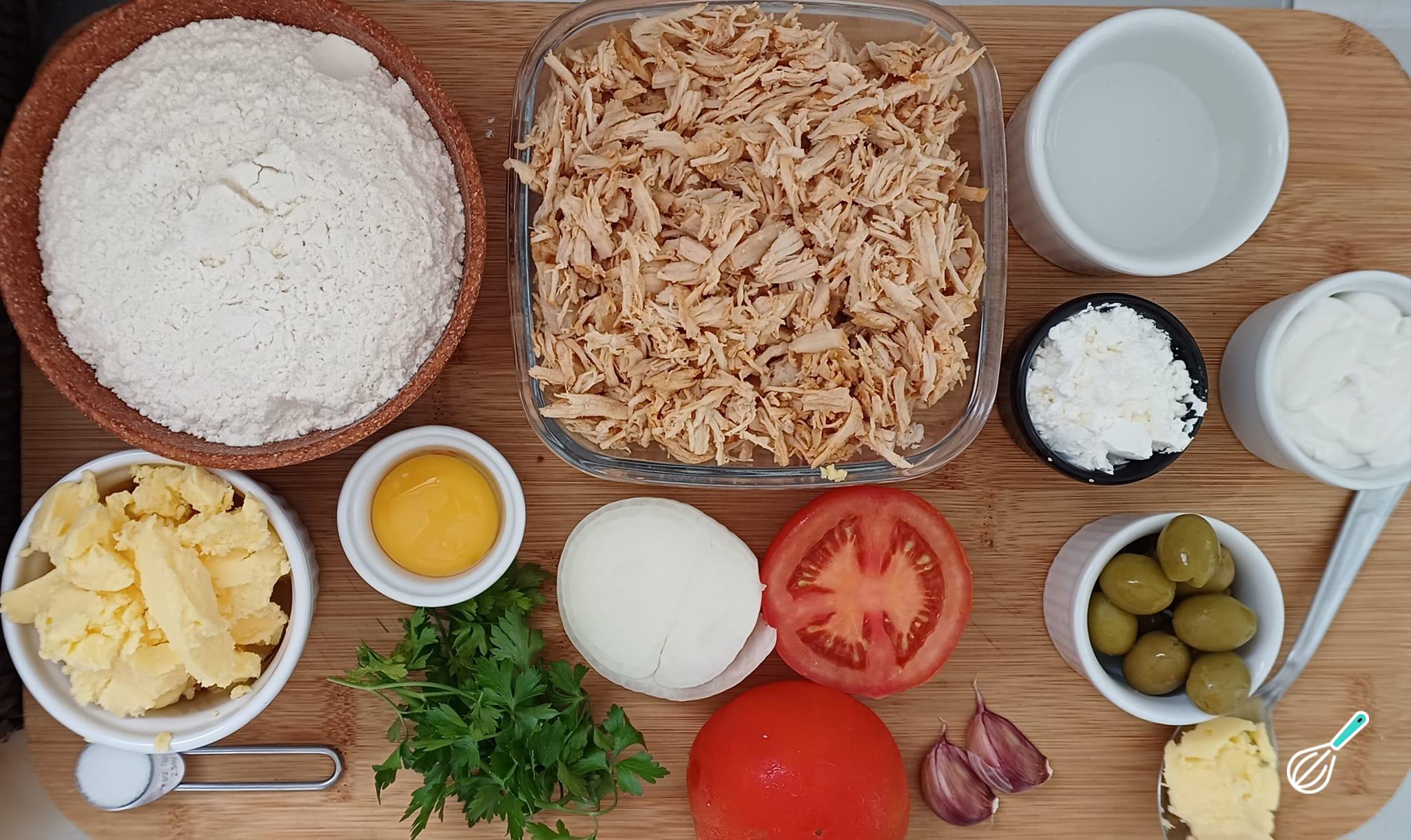 Comece organizando todos os ingredientes que irá usar para facilitar o preparo do empadão de frango cremoso.