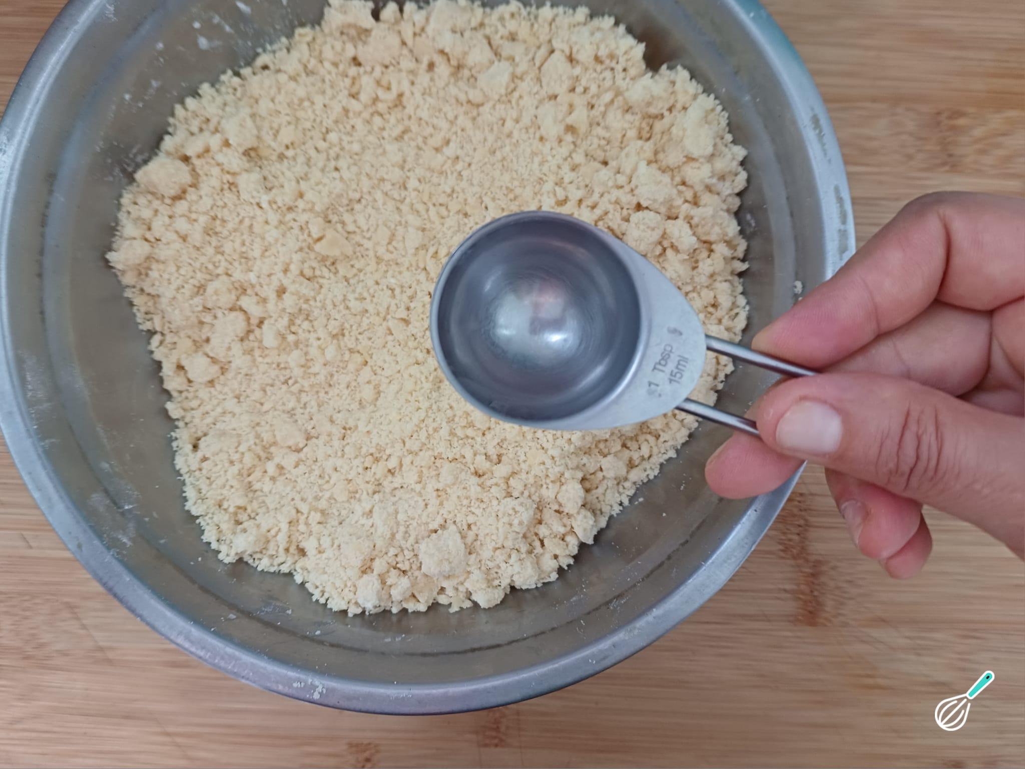 Adicione a água gelada aos poucos até chegar no ponto ideal para modelar a massa, sem grudar demais nas mãos.