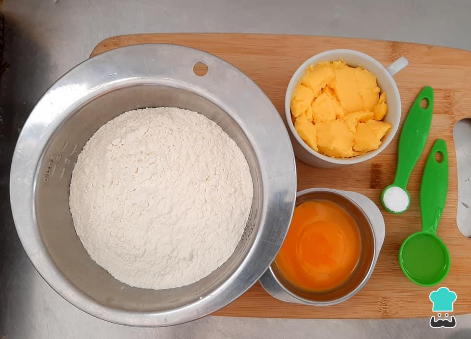 Agora vamos preparar a massa do empadão, que será tipo massa podre. Separe todos os ingredientes necessários.