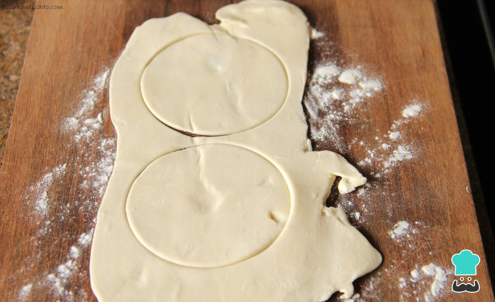 Abra também a bola de massa menor e corte em círculos, que irão corresponder à tampa das empadinhas de frango.