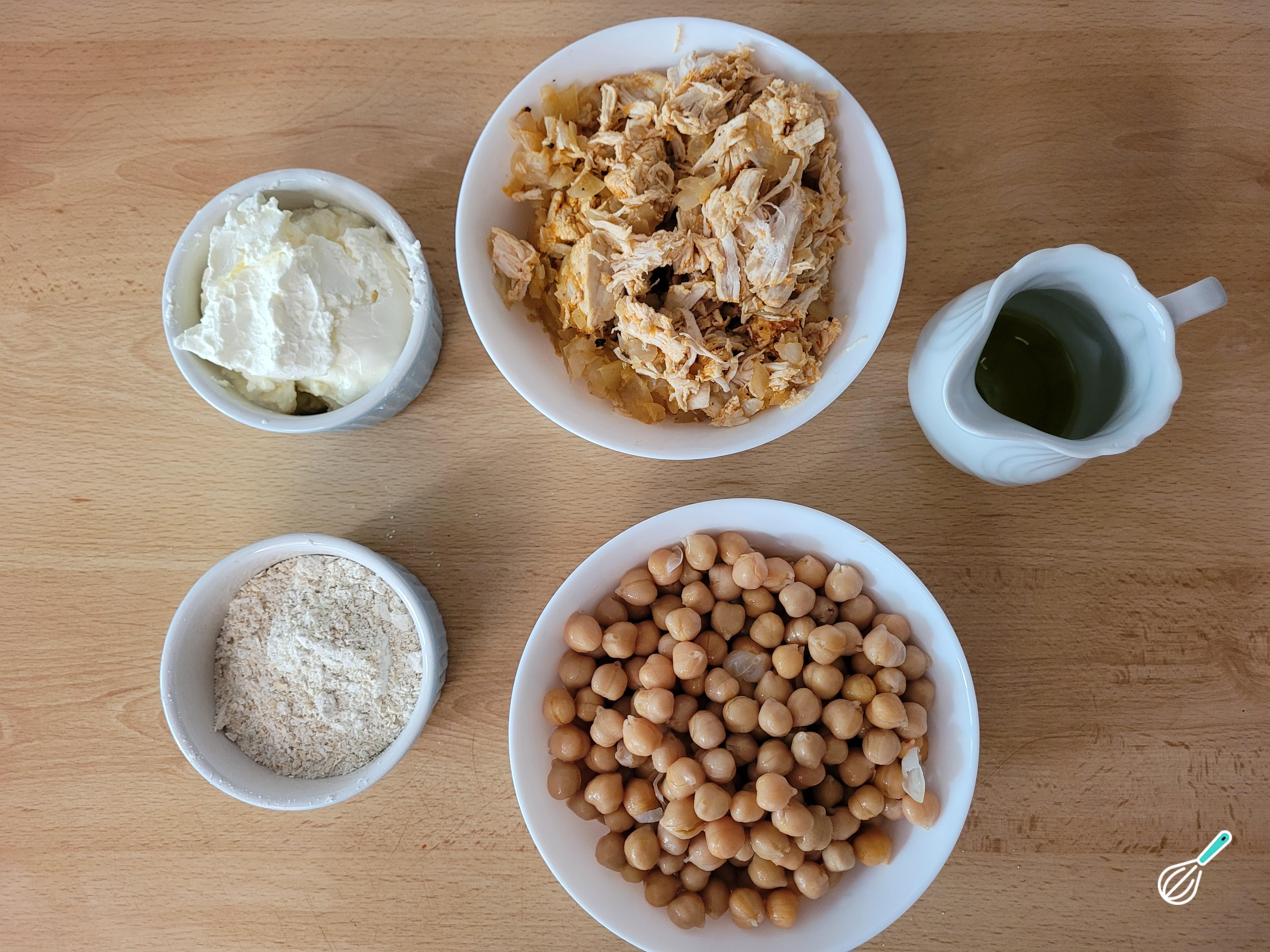 Comece separando os ingredientes para fazer sua empadinha de grão-de-bico.