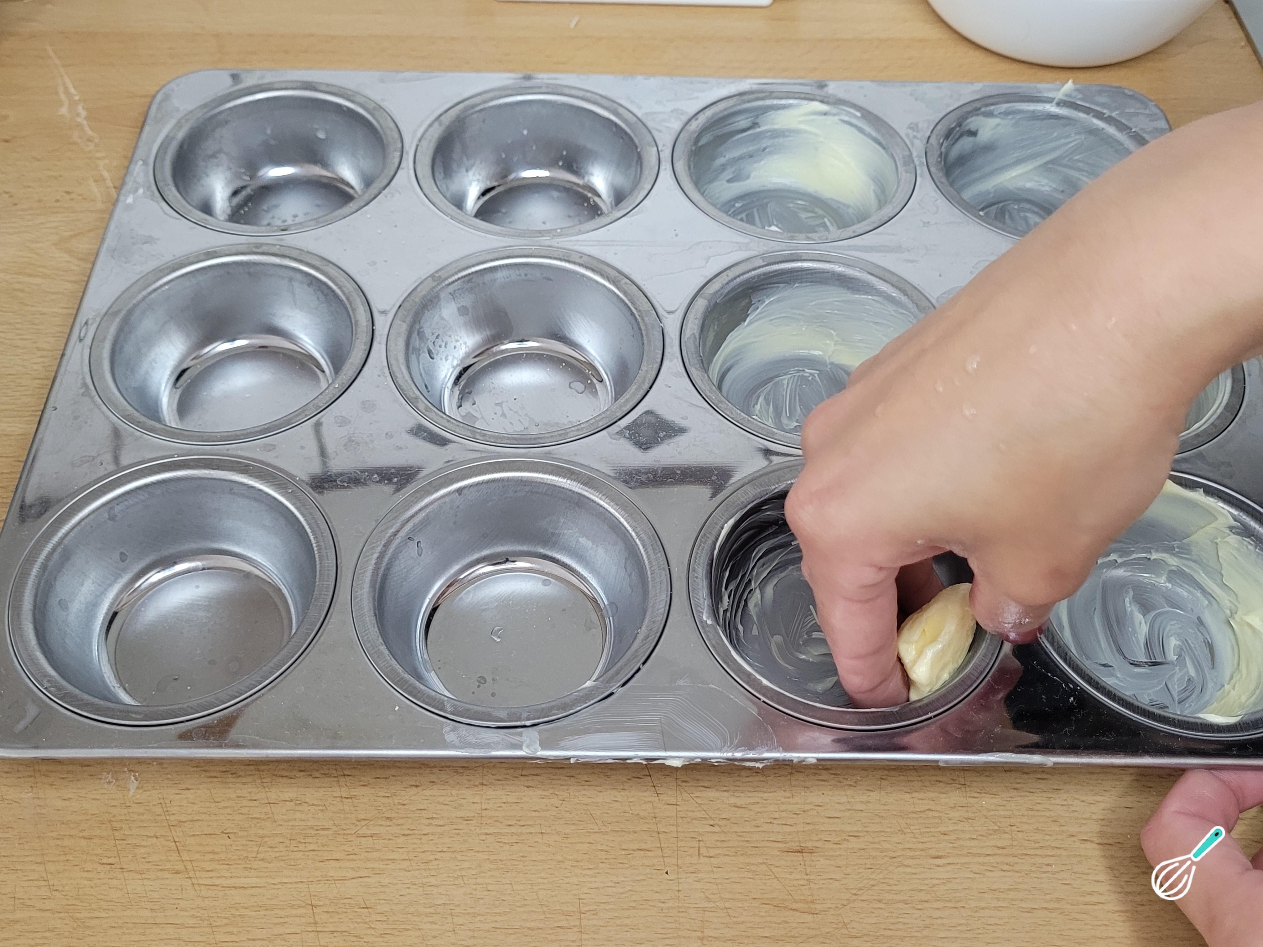 Unte as forminhas com manteiga ou azeite.
