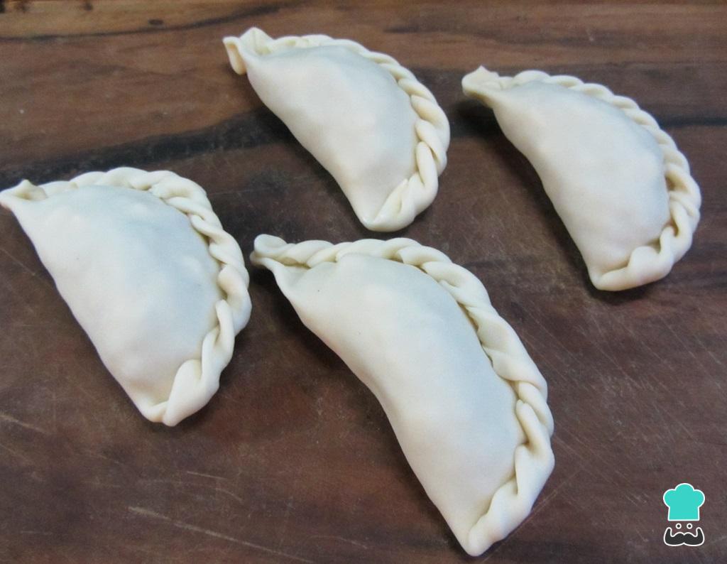 Feche as empanadas, enrolando as extremidades para prevenir que o recheio saia.