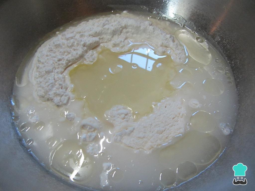 Comece com a preparação da massa para empanadas, colocando em uma tigela a farinha, a água, o óleo, o sal e a pimenta do reino.