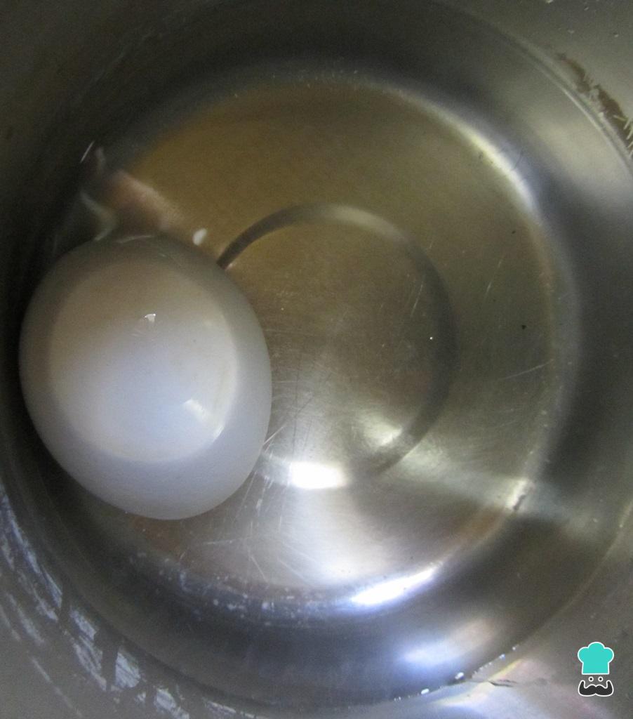 Antes de iniciar a preparação do recheio das empanadas de atum, coloque o ovo em uma tigela pequena e cozinhe por 10 minutos. Reserve.