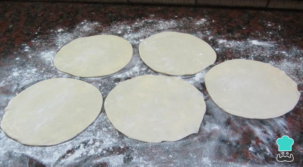 Estenda a massa reservada com um rolo. Corte em círculos para formar as empanadas de atum simples.