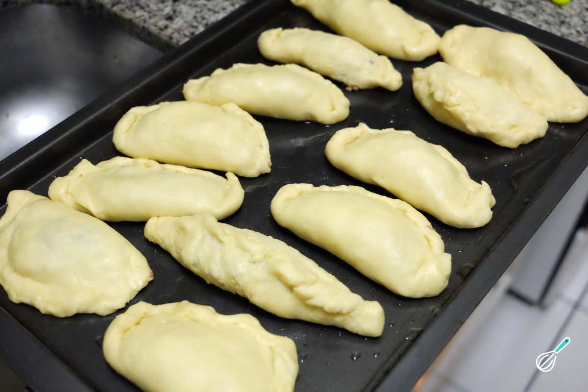 Recheie a massa de empanada, sele as extremidades e leve ao forno. A temperatura e o tempo de cozimento dependem do tipo de massa, mas a temperatura média deve ser de 200 ° C por 20-25 minutos. Se preferir, confira como preparar massa para empanada caseira.