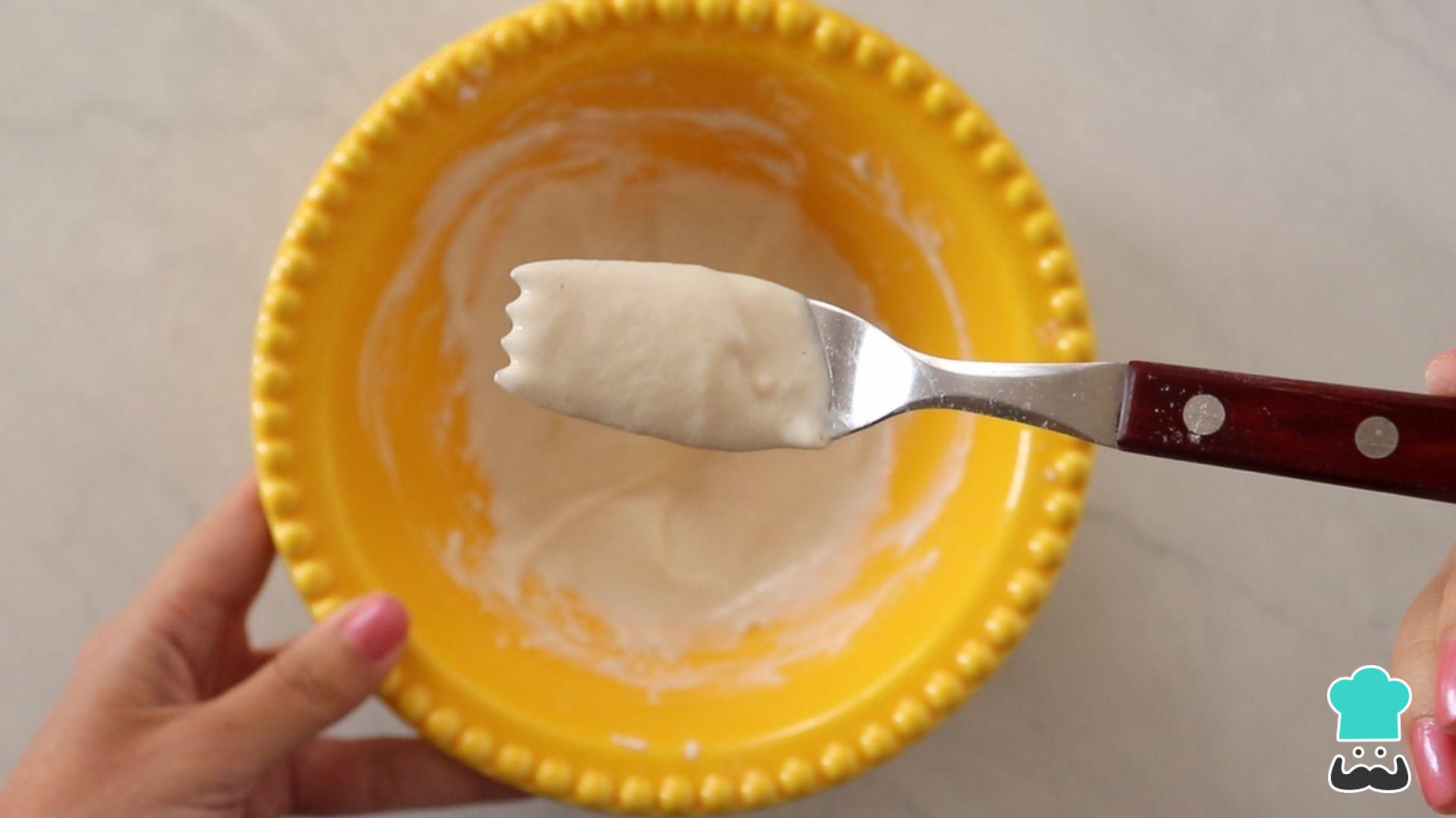 A mistura deve ficar bem molinha, mas não aguada, não muito líquida, como na imagem abaixo.