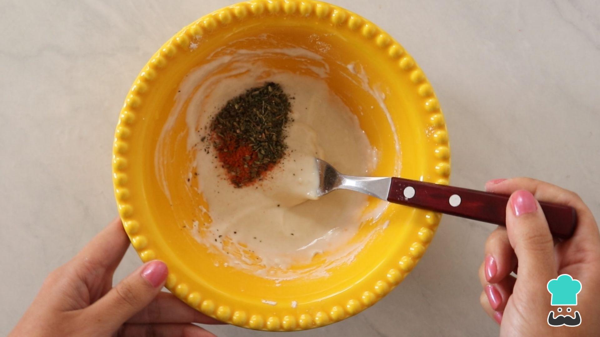 Junte os temperos no creme e misture bem.